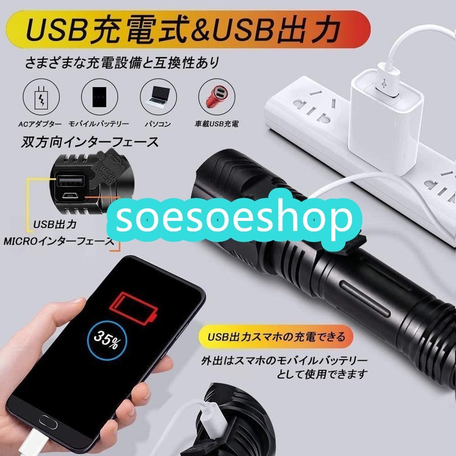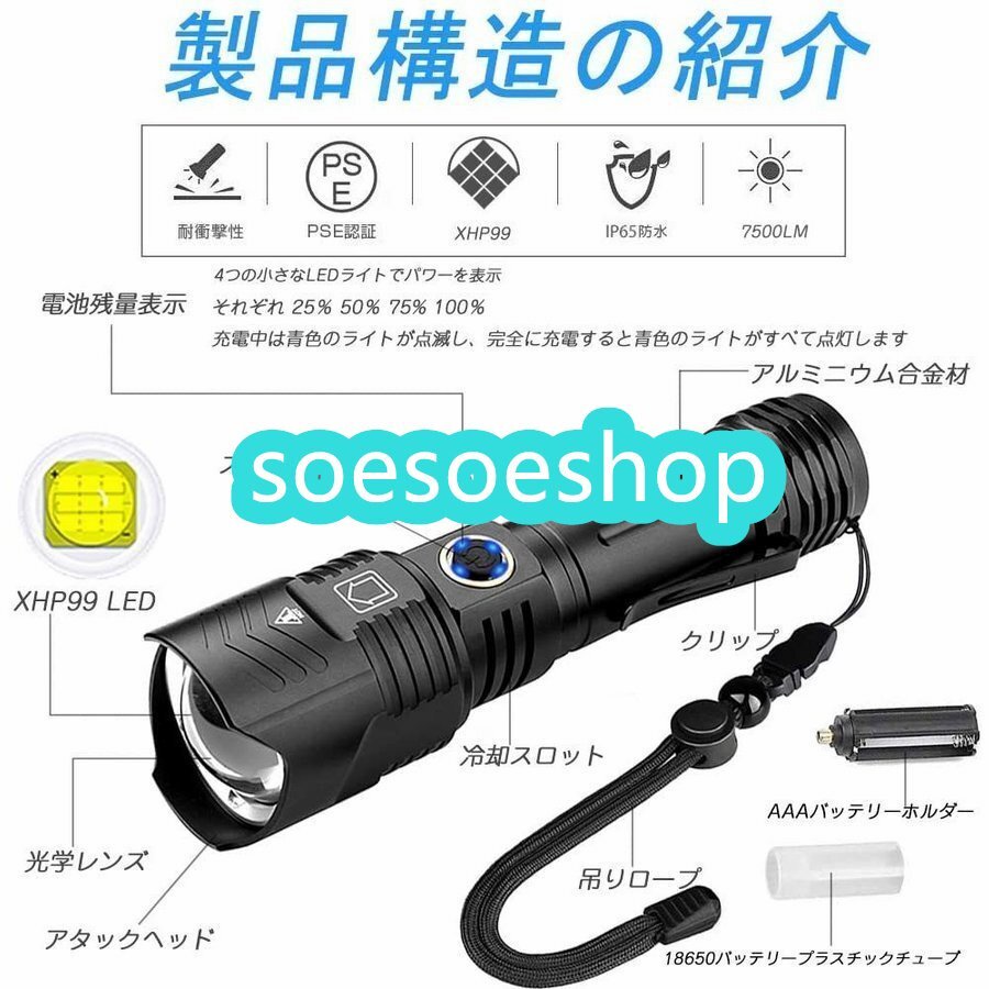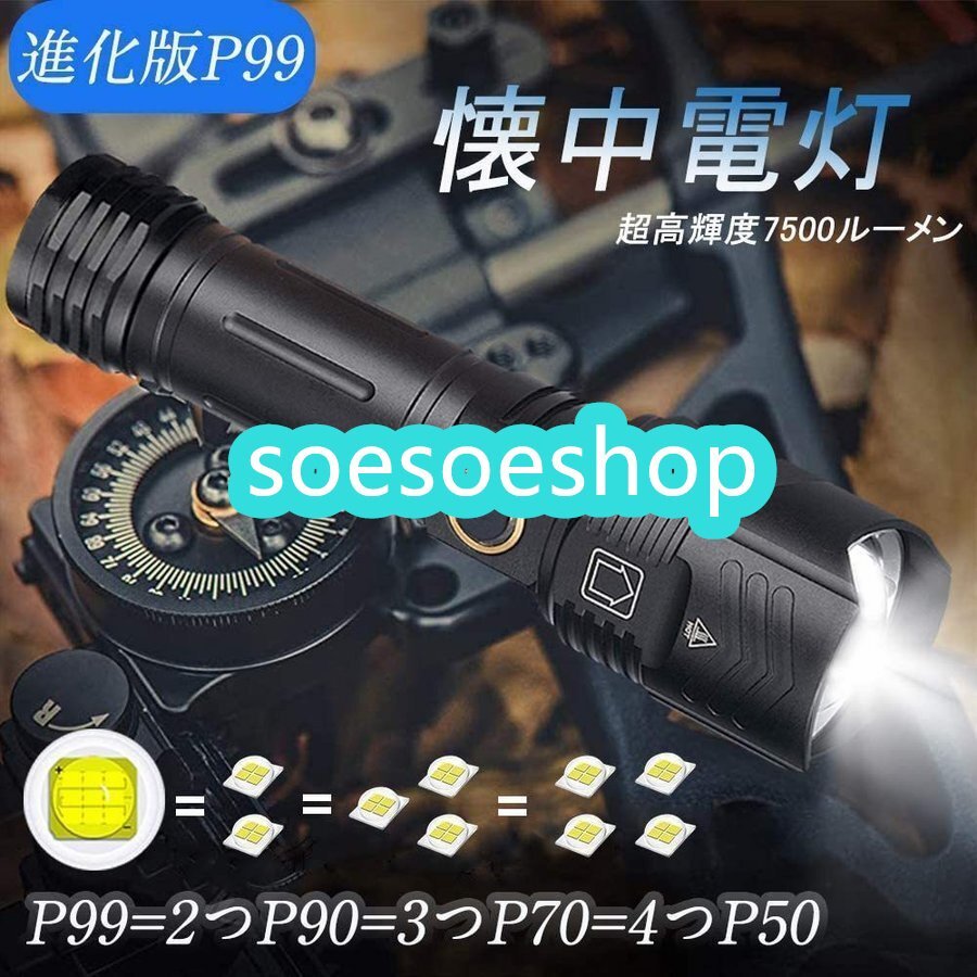 品質保証 懐中電灯 ライト 超強力 超高輝度7500ルーメン ハンディライト CREE XHP99 ledライト キャンプ 軍用 最強 小型 USB充電式 F513