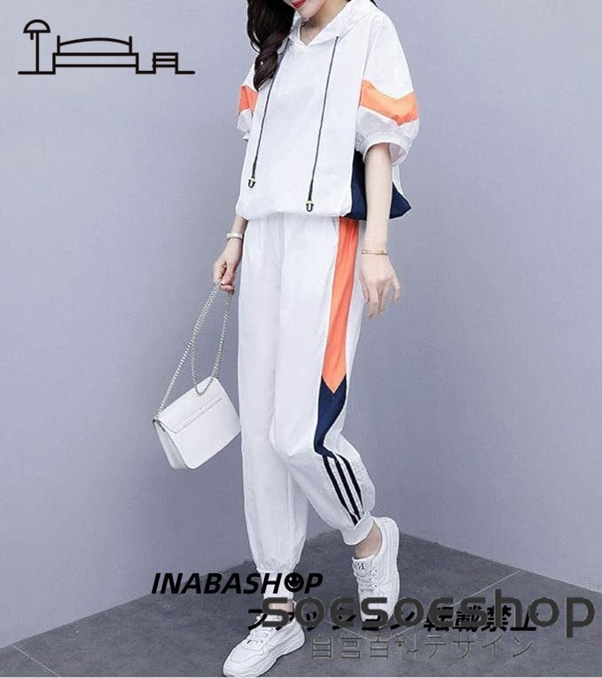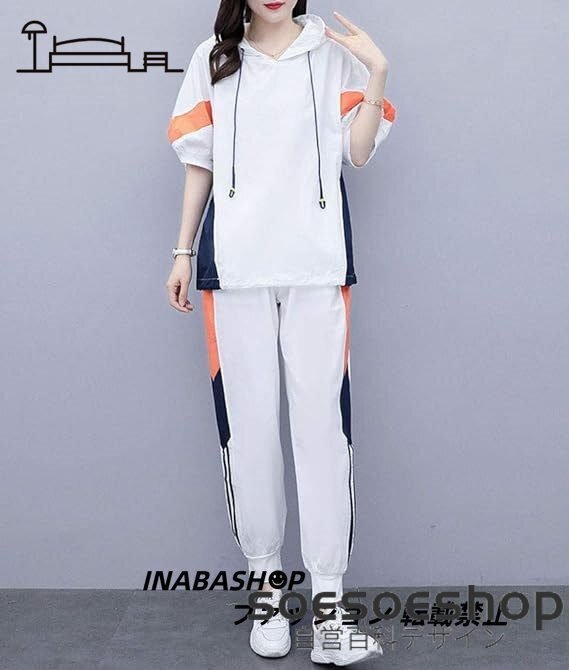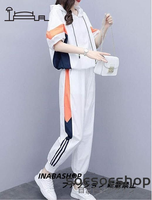 フード付きジャージ 半袖パーカー セットアップ レディース スウェット 上下2点セット ゆったり 大きいサイズ 春夏服 スポーツウェア韓国風