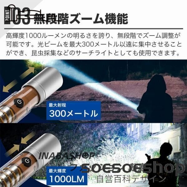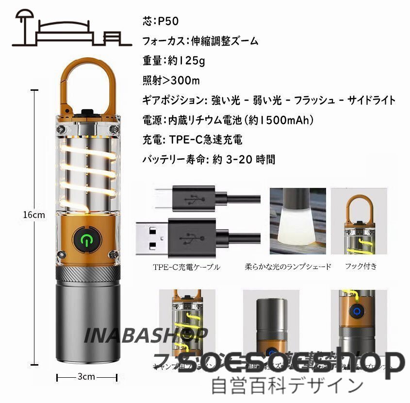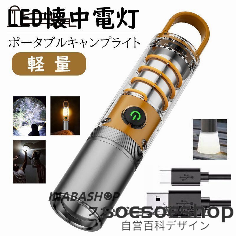 超高輝度 懐中電灯 ランタン LEDライト 強力 IP55 防水 ズーム機能 長遠射 フラッシュライト キャンプライト Type-C充電式