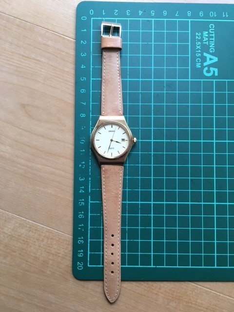良品 良デザイン SEIKO セイコー SPIRIT スピリット ゴールド 5P32-6B30 デイト ベージュベルト クオーツ メンズ 腕時計