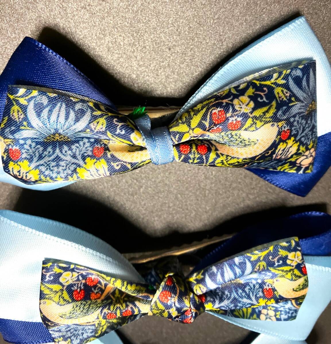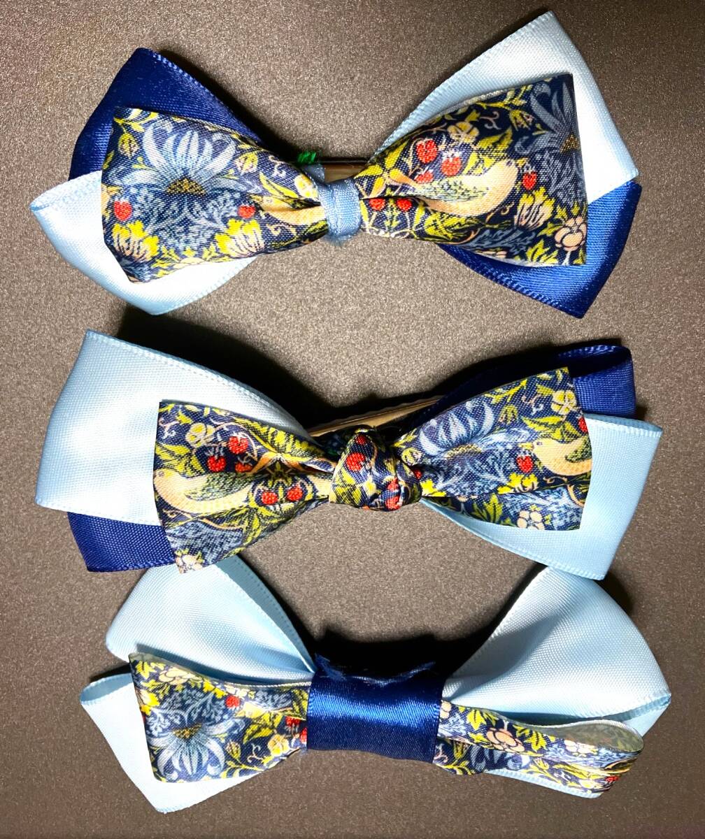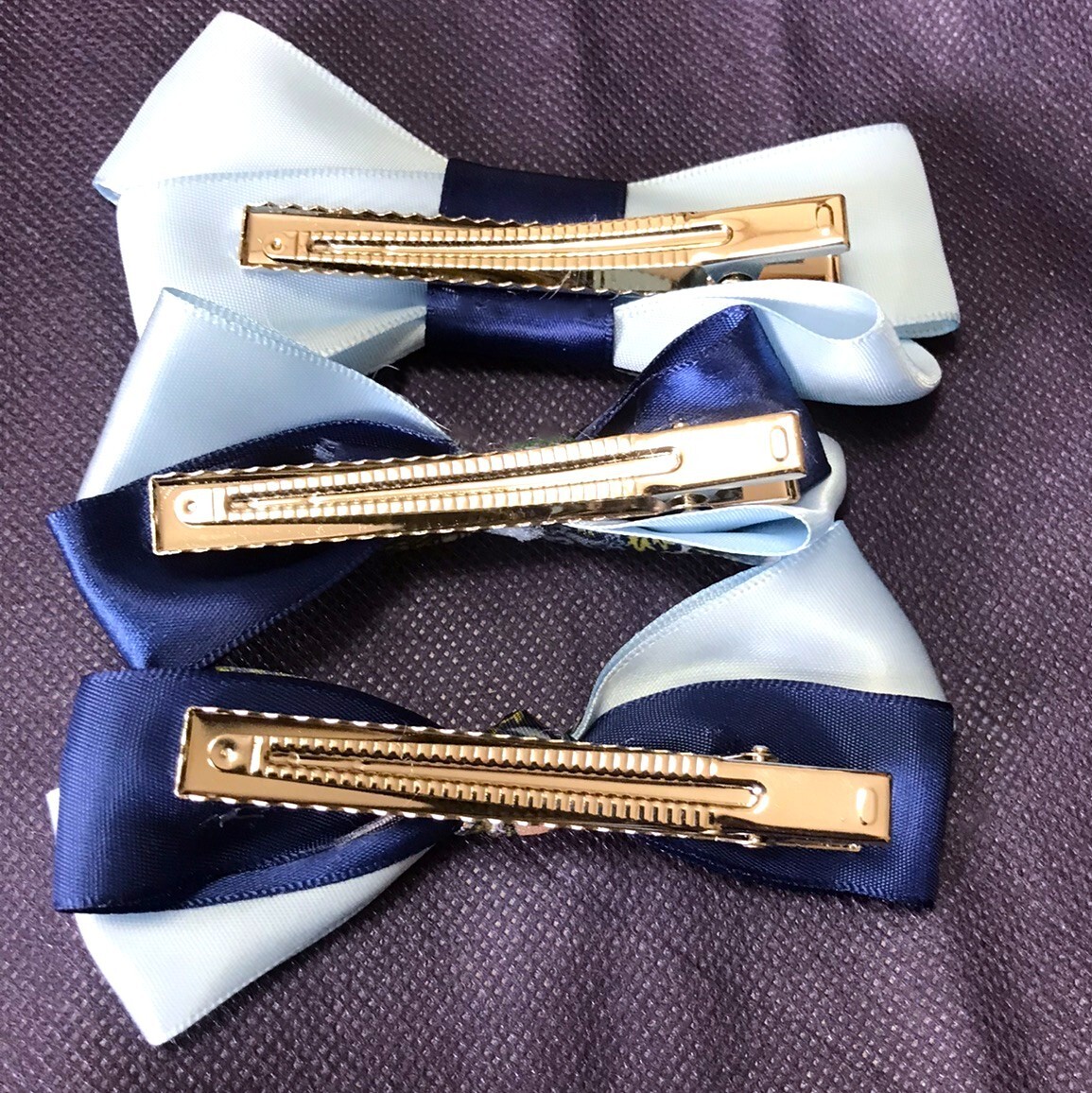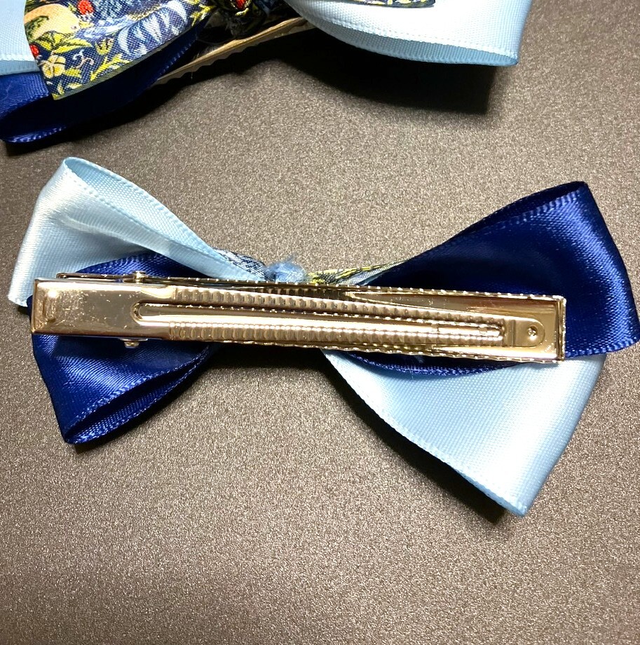 ハンドメイド リボン クリップ 青 水色 小鳥 お花 デザイン 3つセット