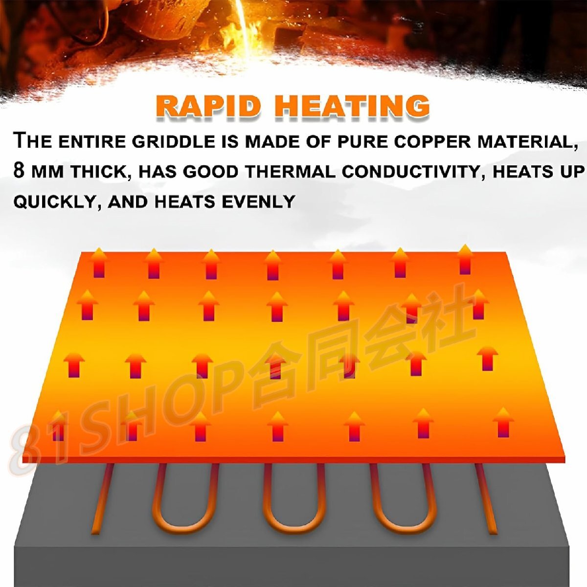 加熱プレートは8mmの厚さの純銅でできており、滑らかで手を切らず、導電性があり、焦げ付きがなく、急速に加熱されます。