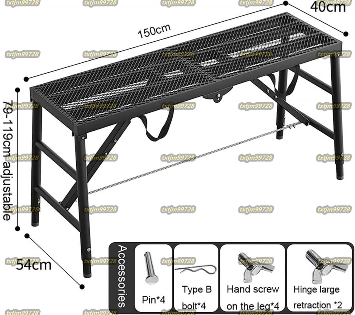 テーブル長さ150cm *テーブル幅40cm *高さ79-119cm調整可能、脚間距離54cm
