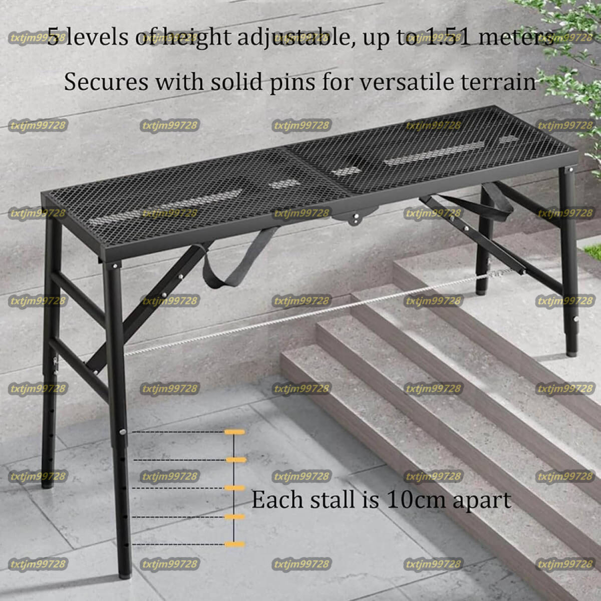 【ポータブルで折りたたみ可能なデザイン】:足場は組み立てずに開いて使用でき、高さは5段階に調整できます。折りたたみ構造は屋外および屋内での使用に非常に便利で、狭い場所にも非常に適しています。折りたたみ式のデザインなので、ほぼどこにでも保管でき、持ち運びや隠しが簡単です。