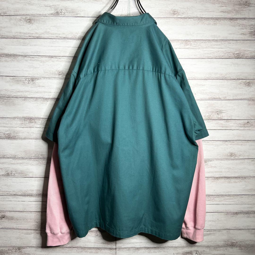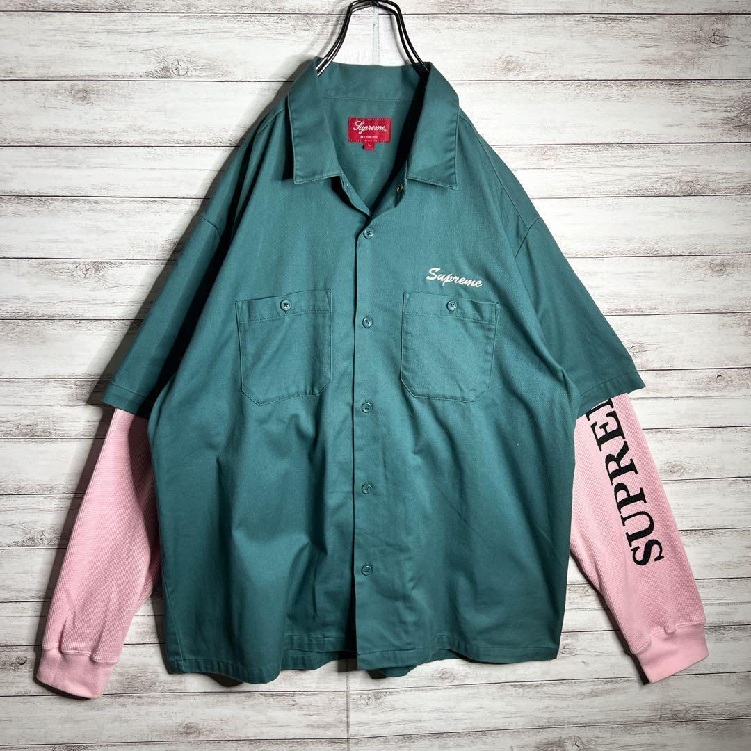 【入手困難!!】シュプリーム 刺繍 スリーブロゴ レイヤード シャツ 開襟 オープンカラー トレーナー ゆるだぼ 重ね着 希少 supreme パーカー スウェット