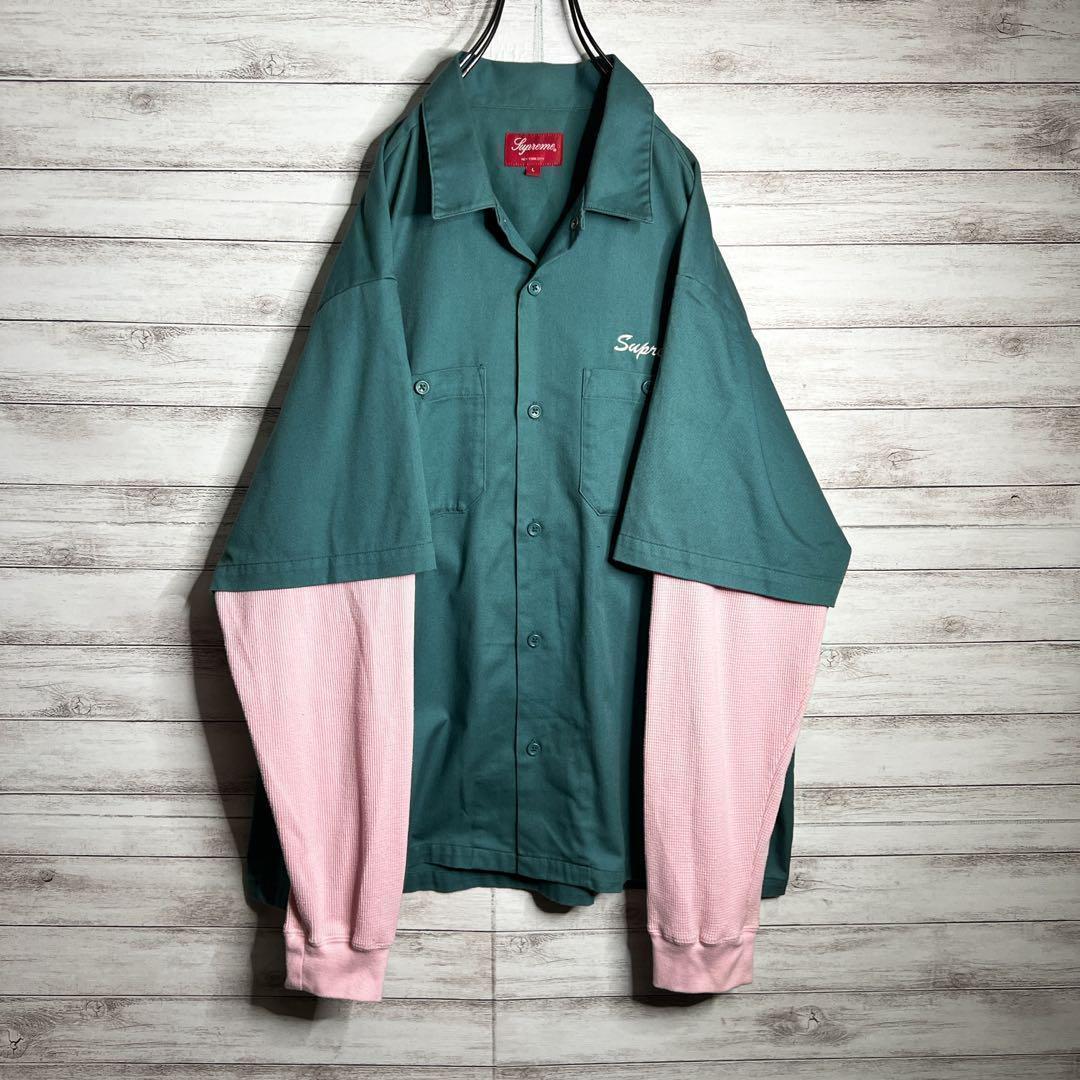 【入手困難!!】シュプリーム 刺繍 スリーブロゴ レイヤード シャツ 開襟