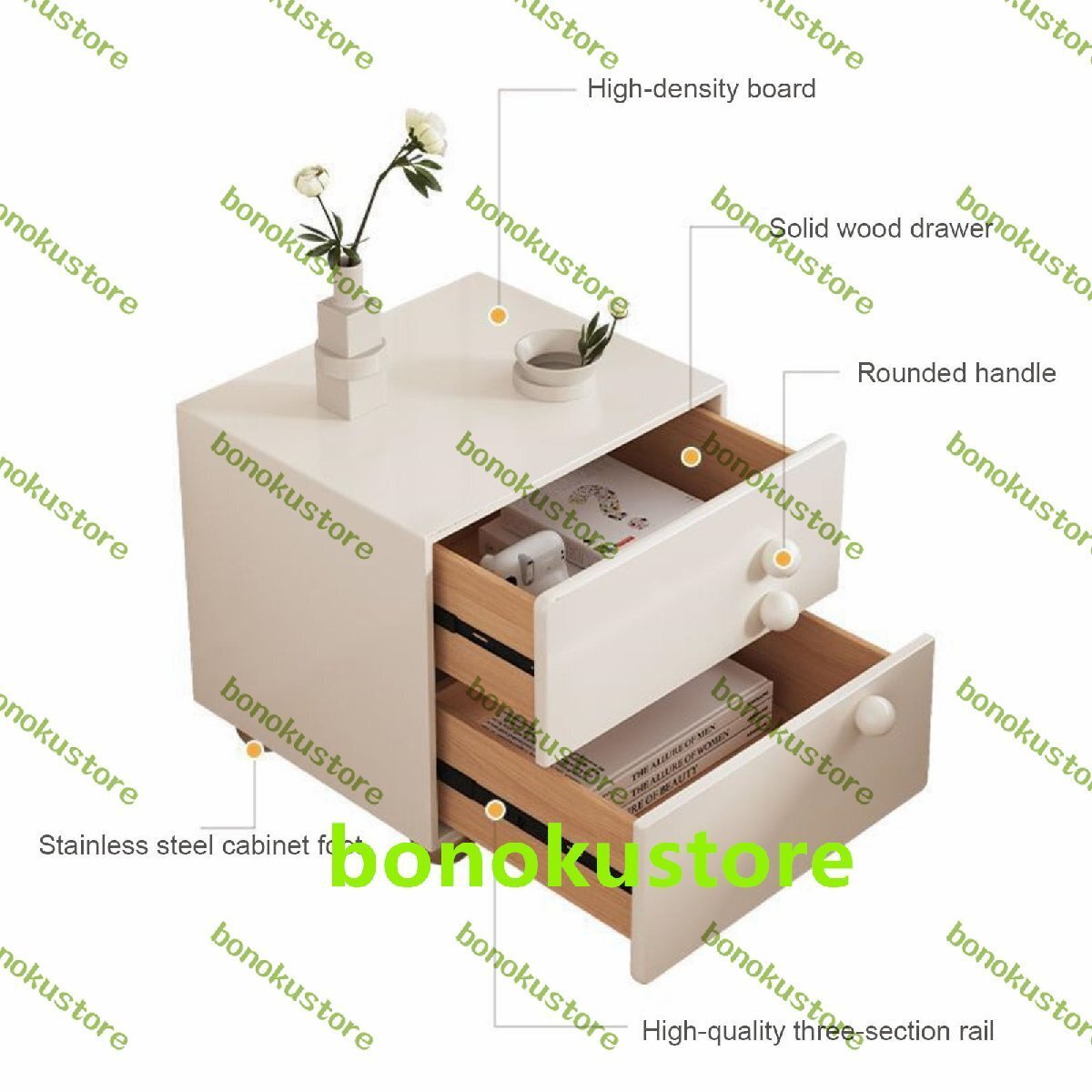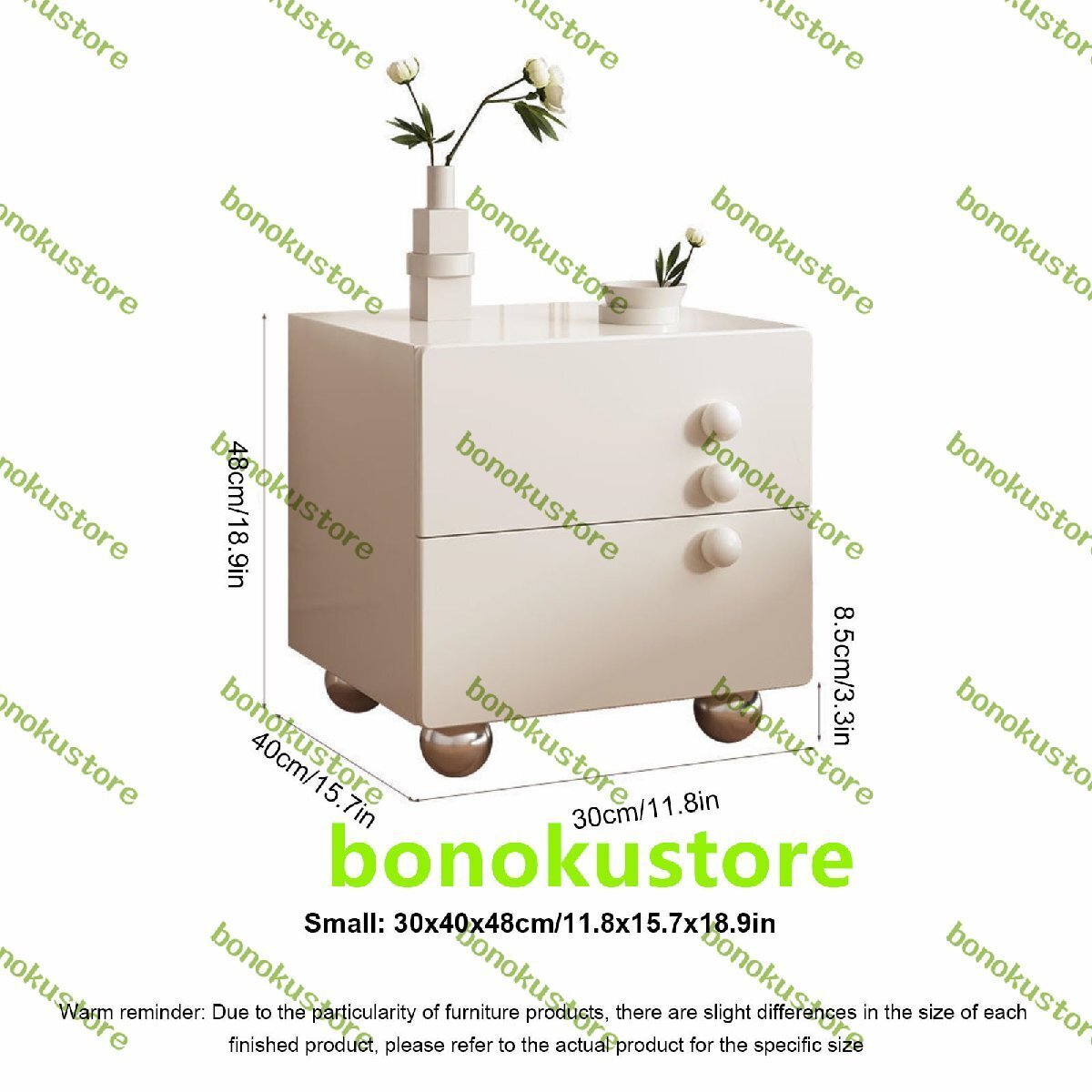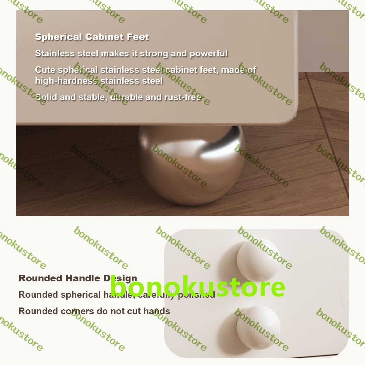 このナイトスタンドは、指定された場所に静けさとユニークさを加えます。リビングルーム、寝室、廊下、ホームオフィスなどに最適です。特徴:01: E1グレードの高密度ボード - フレームを構築するために選択されたE1グレードの環境に優しい高密度ボード、強くて安定しています。優れた耐荷重性、変形しにくく、耐久性があります。02: 高品質の3セクションレール - 高品質の3セクションレールを使用します。スムーズに押したり引いたり、朝と夕方にしっかりと静かに引っ張ってください。03: 丸いハンドルデザイン - 丸い球形のハンドル、丁寧に磨かれています。丸い角は手を切ることはありません。04: 球形のキャビネット脚 - ステンレス鋼はそれを強くて強力にします。かわいい球形のステンレス製キャビネット脚。高硬度のステンレス製。強くて安定しており、耐久性があり、錆びません。仕様:小: 30x40x48cm/11.8x15.7x18.9インチ大: 40x40x48cm/15.7x15.7x18.9インチ素材: E1グレードの高密度ボード+ステンレス製キャビネット脚製品重量: 13/15kg 28.6/33ポンドシーン: 寝室、リビングルーム、書斎、ソファサイドパッケージ内容: モダンなナイトスタンド1個
