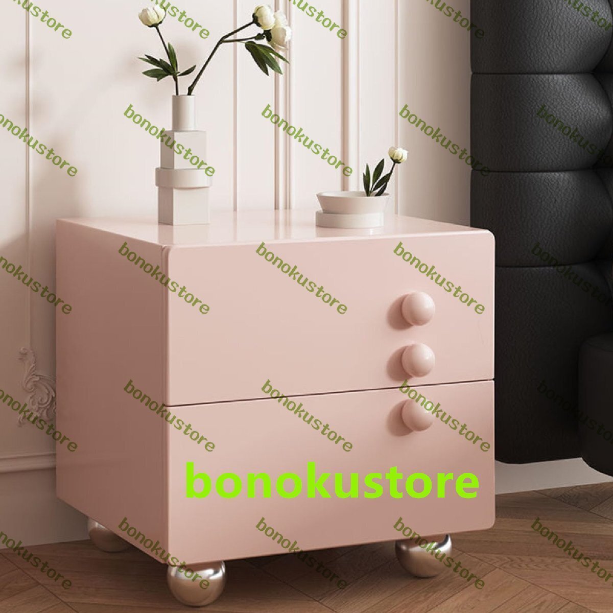 モダンな木製ナイトスタンド、クリームスタイルのベッドサイドテーブル、2つの収納引き出しとボールキャビネット脚付きナイトスタンド、木製アクセントテーブル、キッチン寝室リビングルームのベッドサイド、ピンク、S