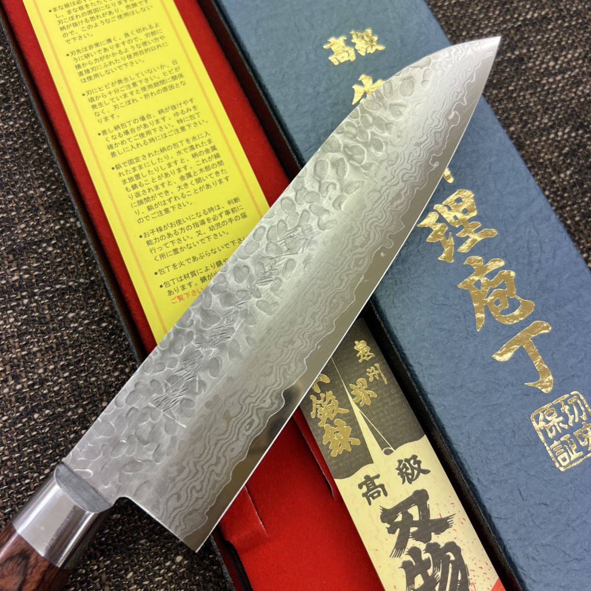 刀身の鎚目模様とダマスカス模様がとてもきれいです。