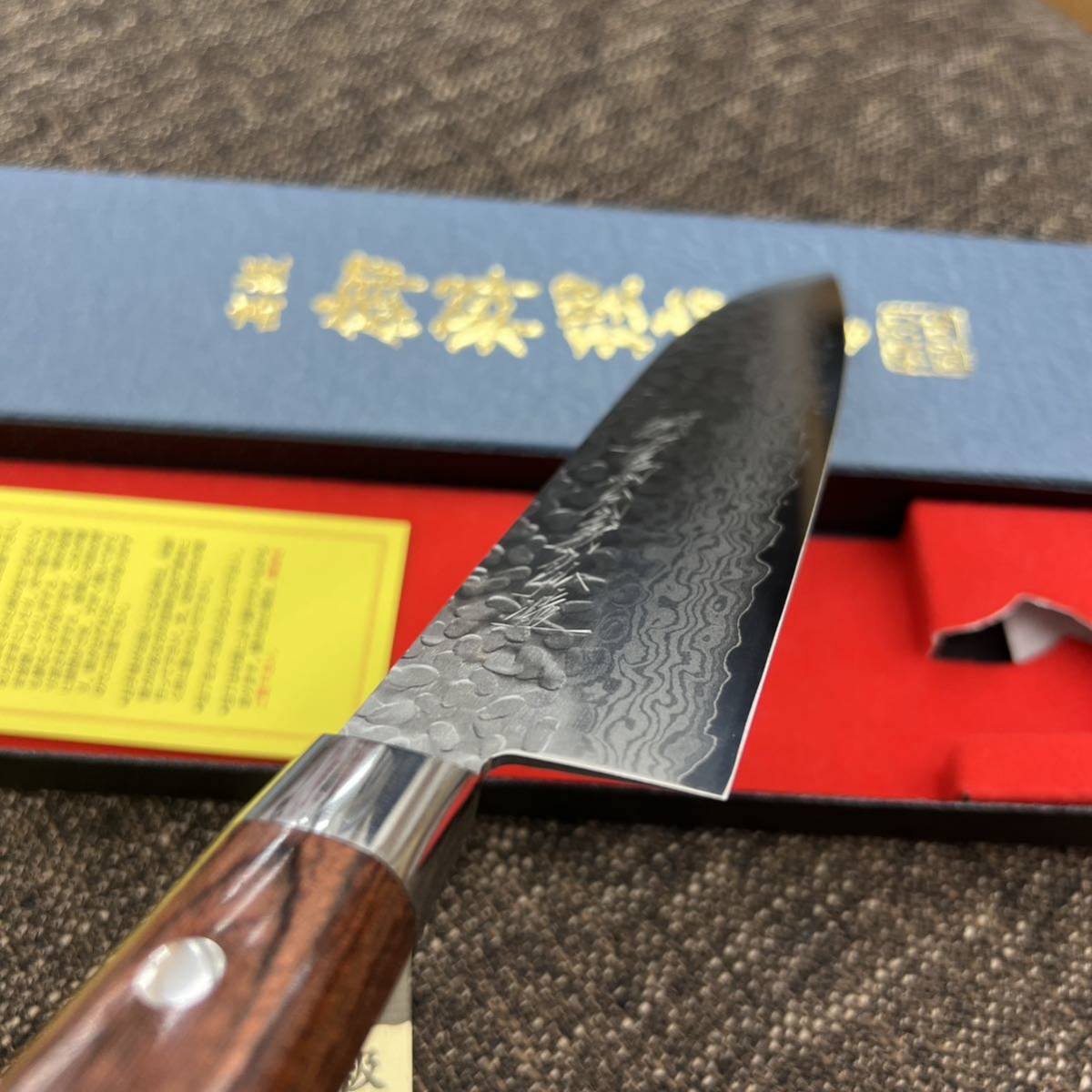 鎚目鍛造ダマスカス 三徳包丁です。