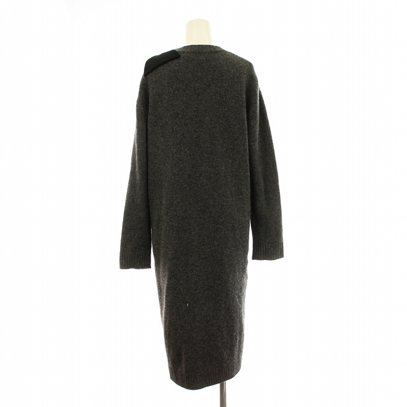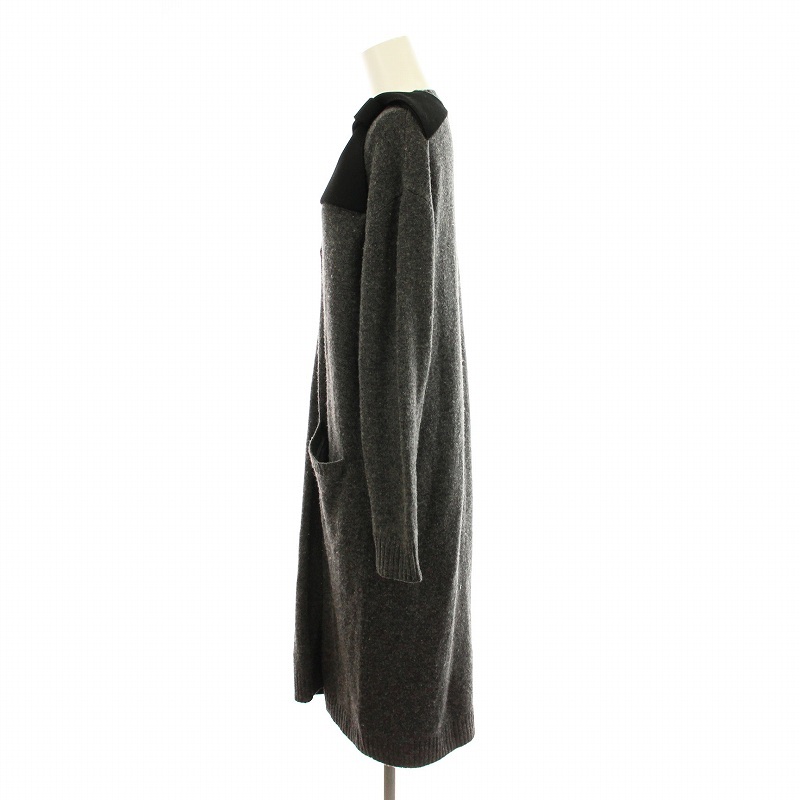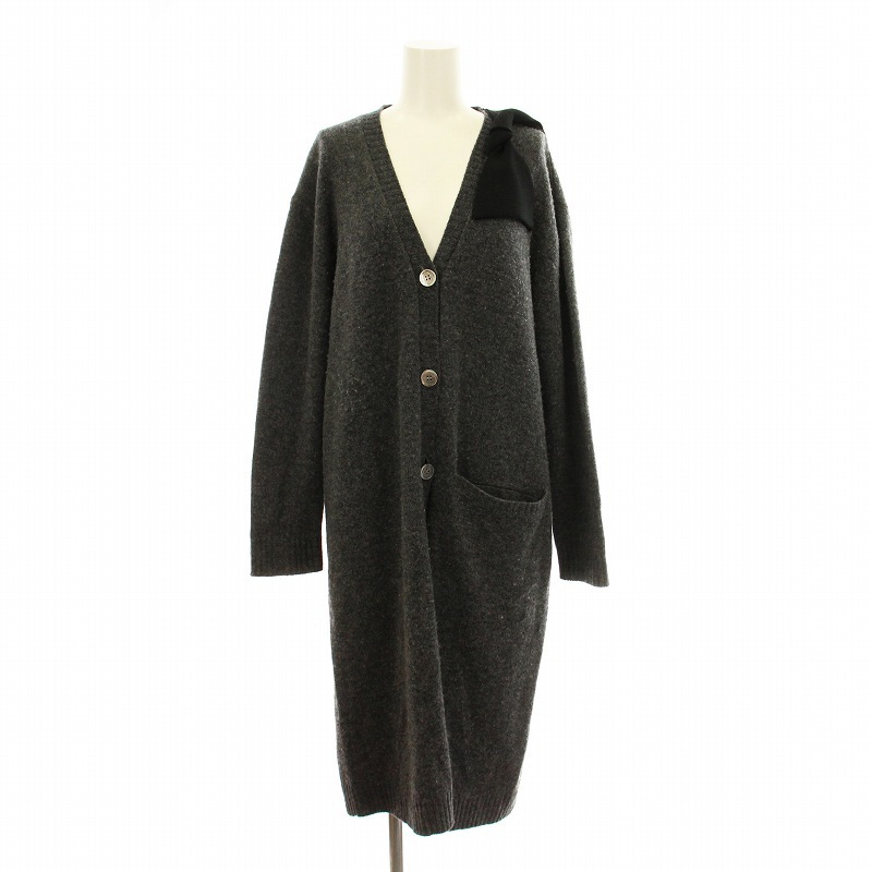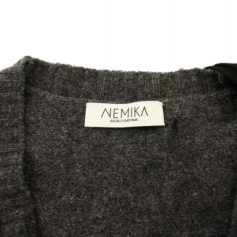 ネミカ NEMIKA KAORU YONEYAMA リボン付きVネックニットカーディガン 0006148 ロング 長袖 ウール 1 グレー 黒 ブラック