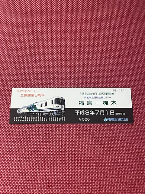 阿部隈急行 全線開業3周年 「阿部急の日」割引乗車券 (管理番号98-80)