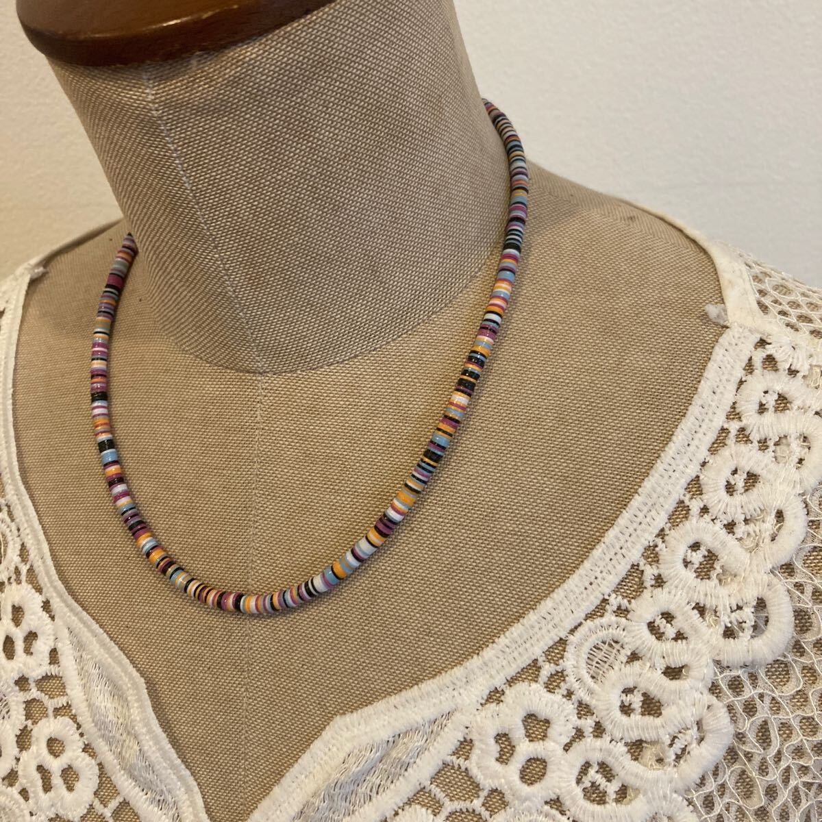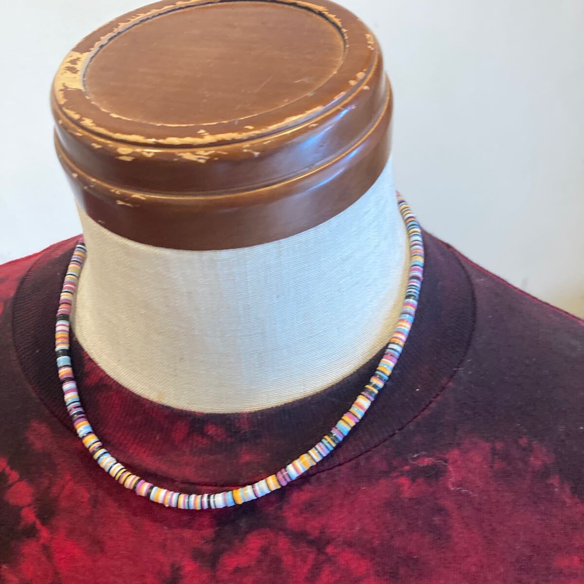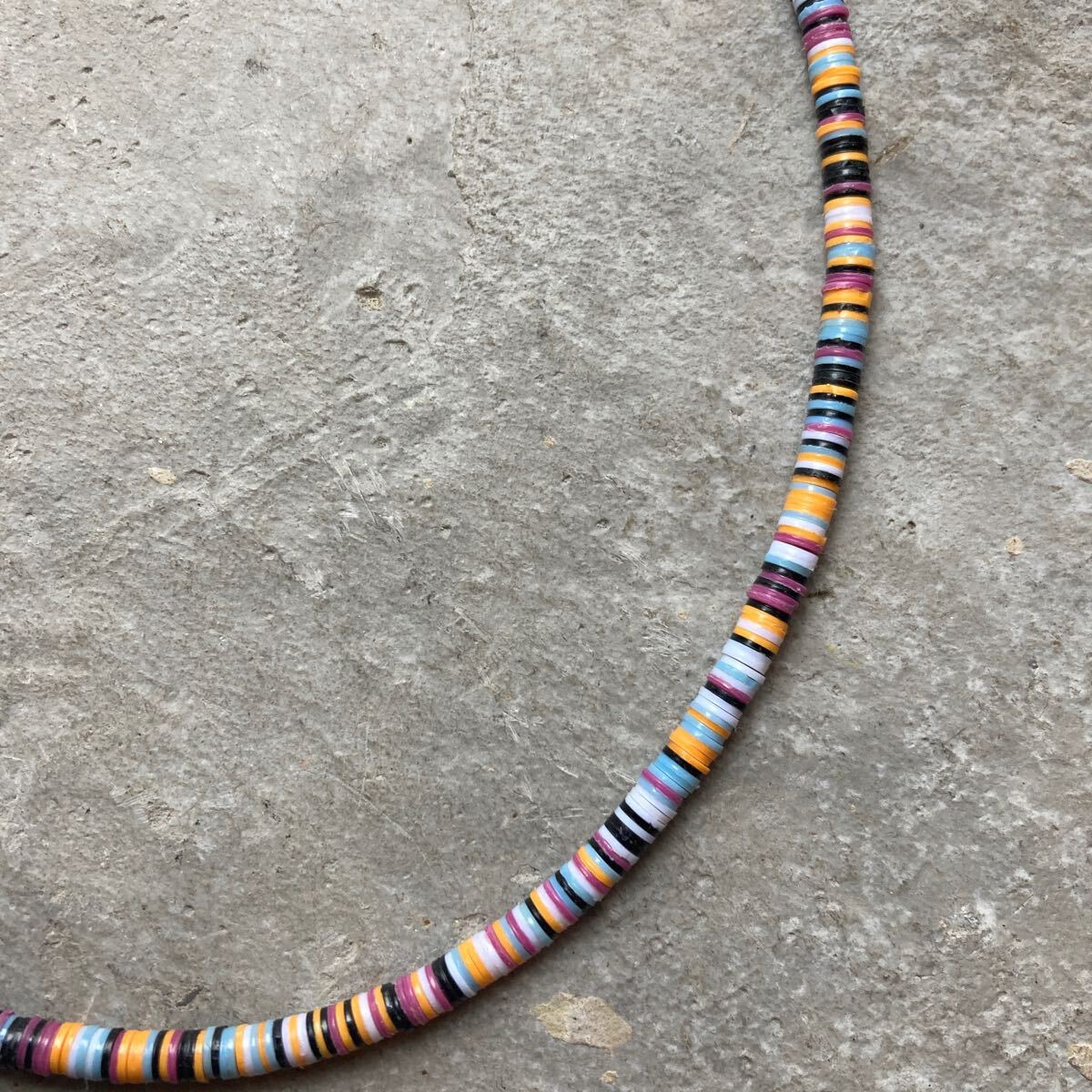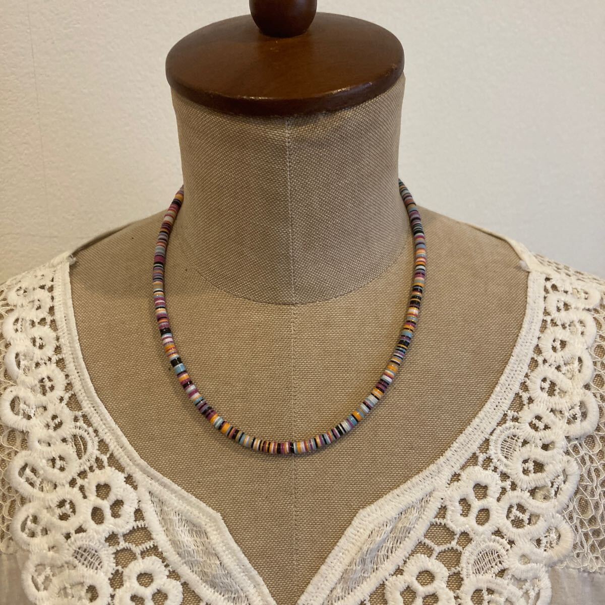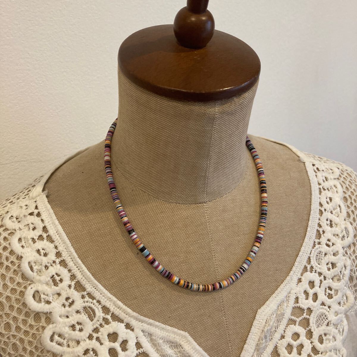薄くて平たい鮮やかなカラーが独特でアフリカらしく目を惹くネックレスです!