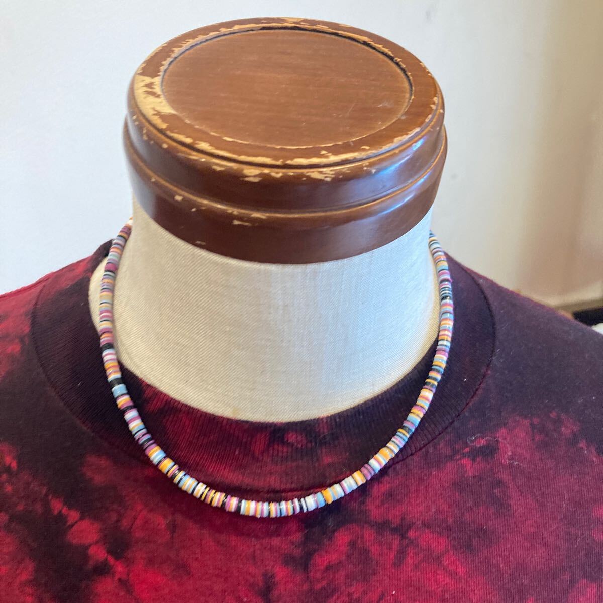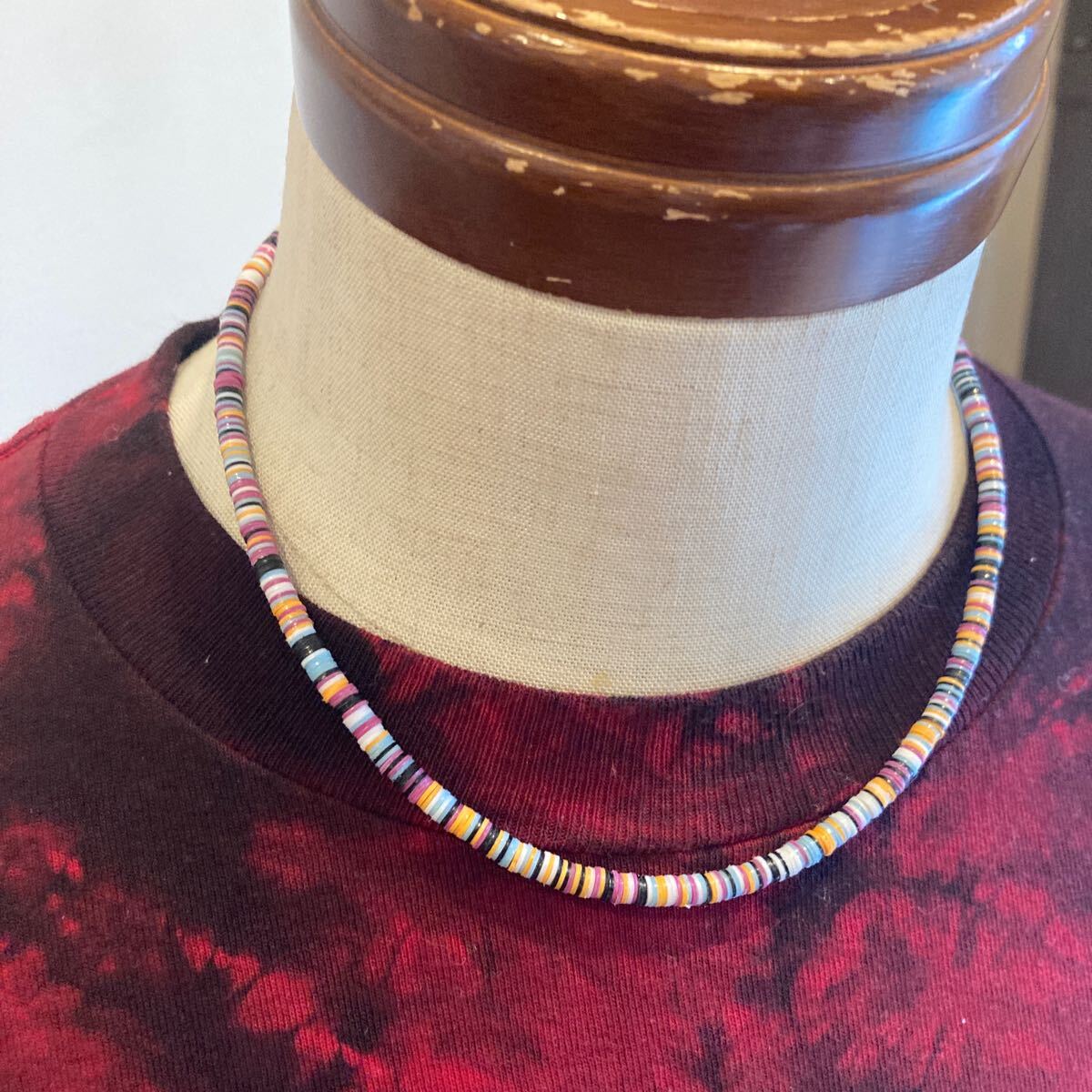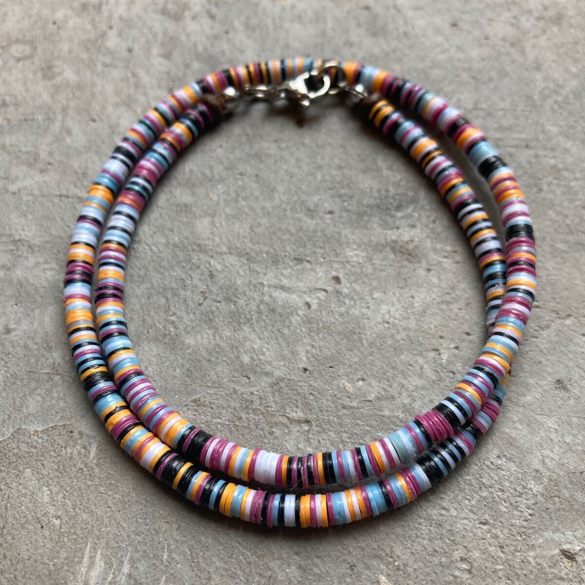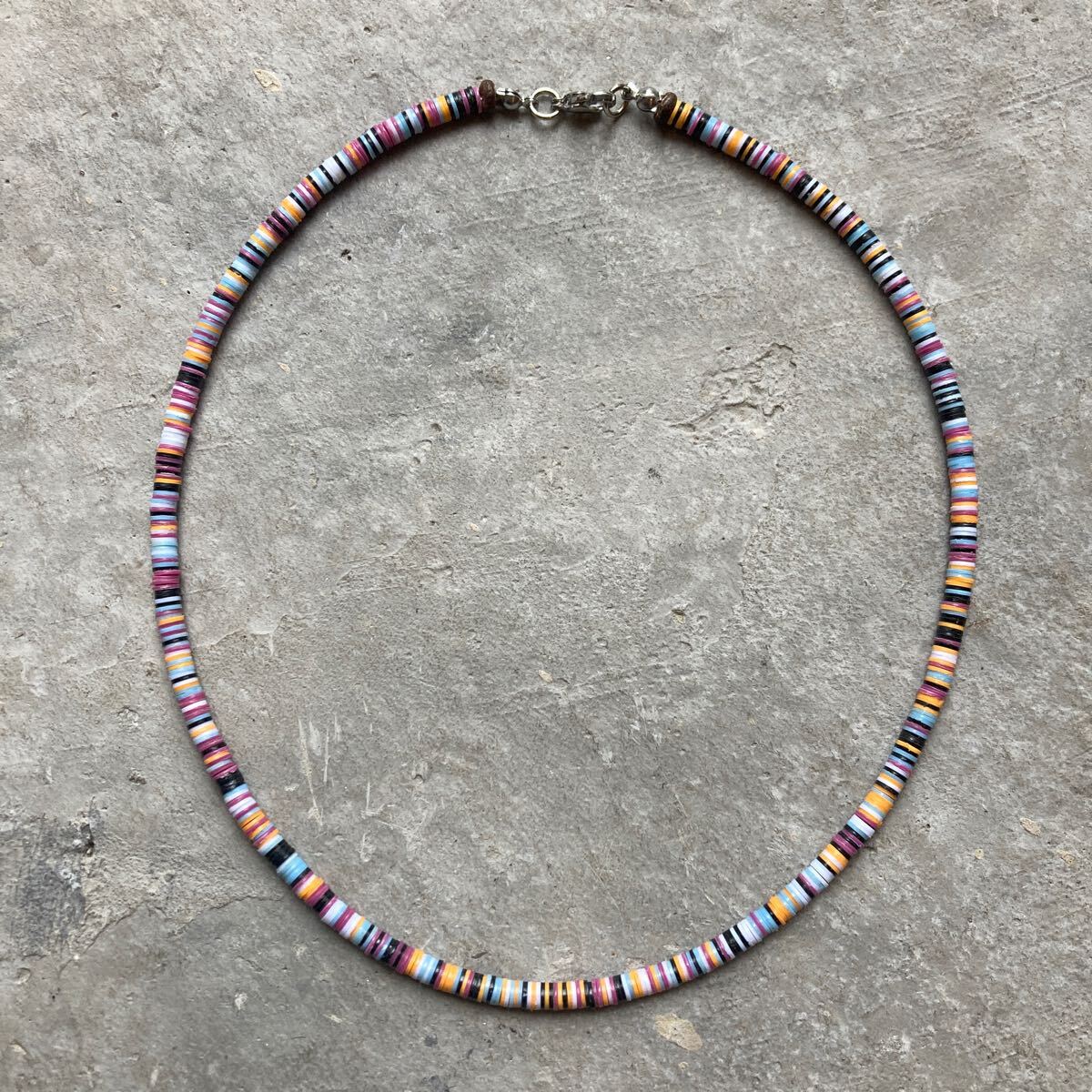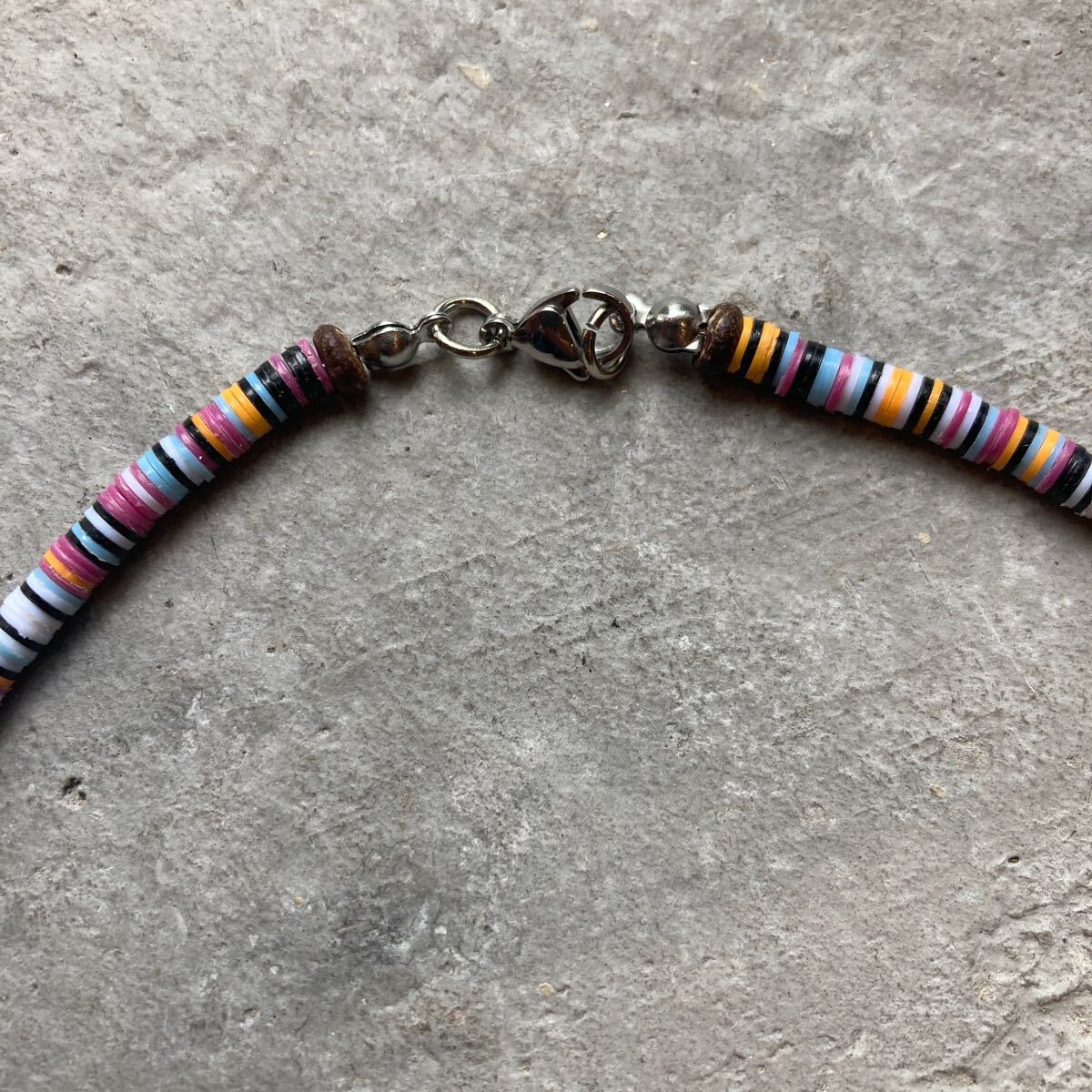 薄くて平たい鮮やかなカラーが独特でアフリカらしく目を惹くネックレスです!