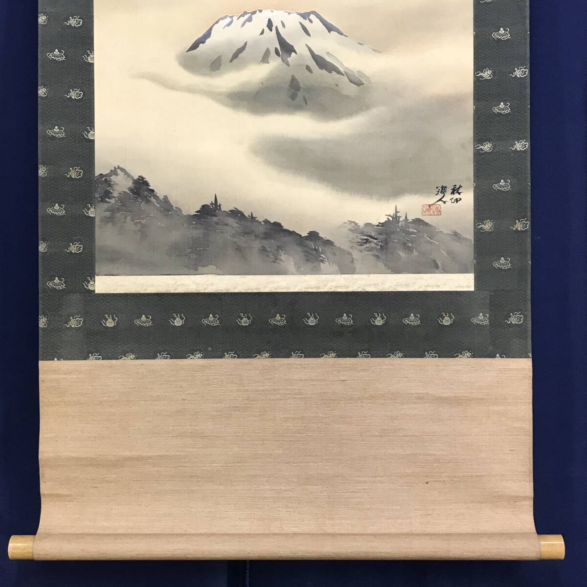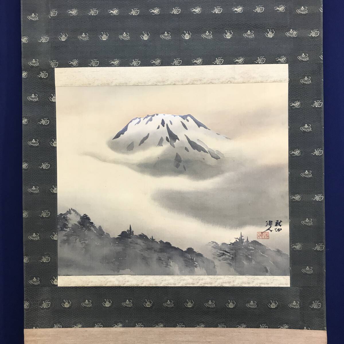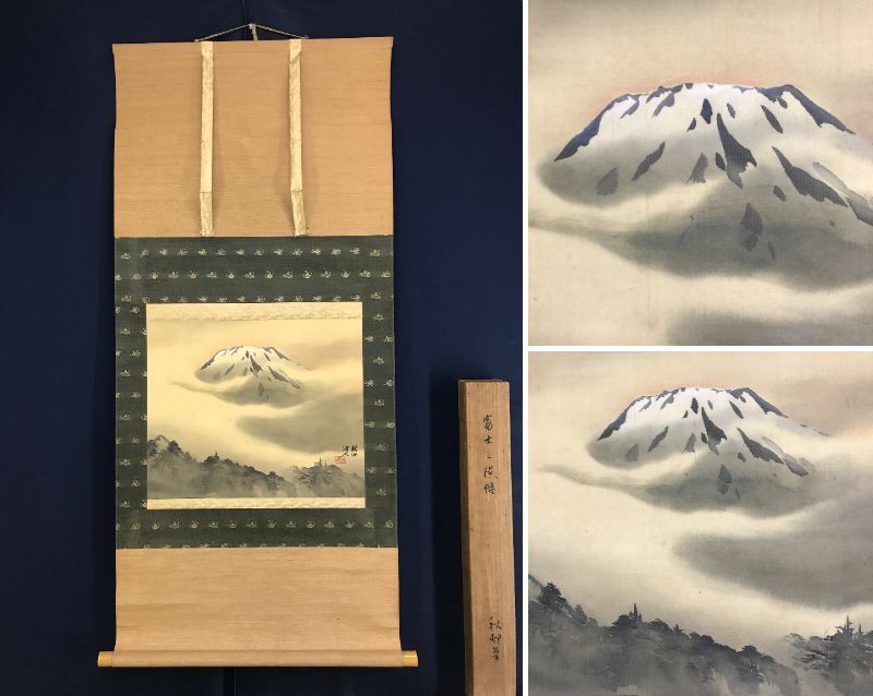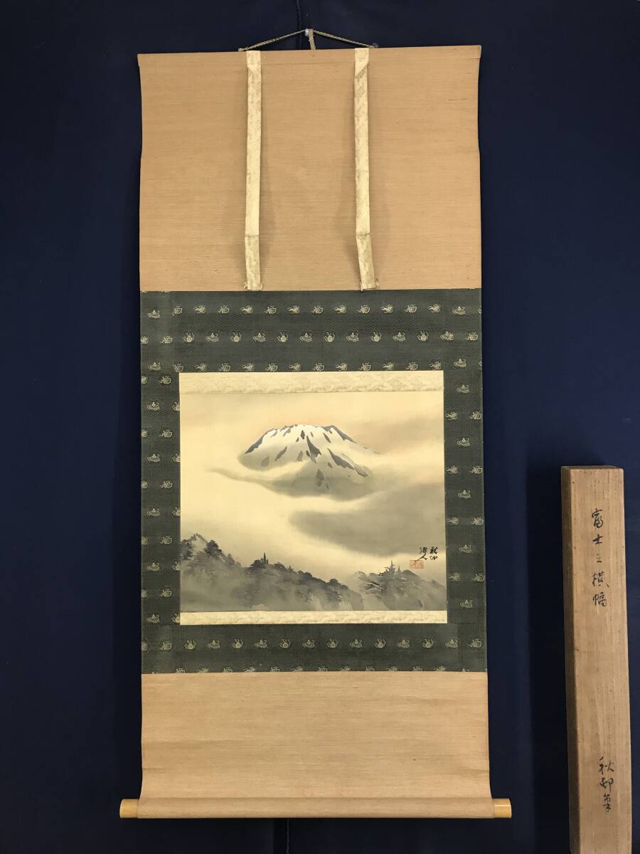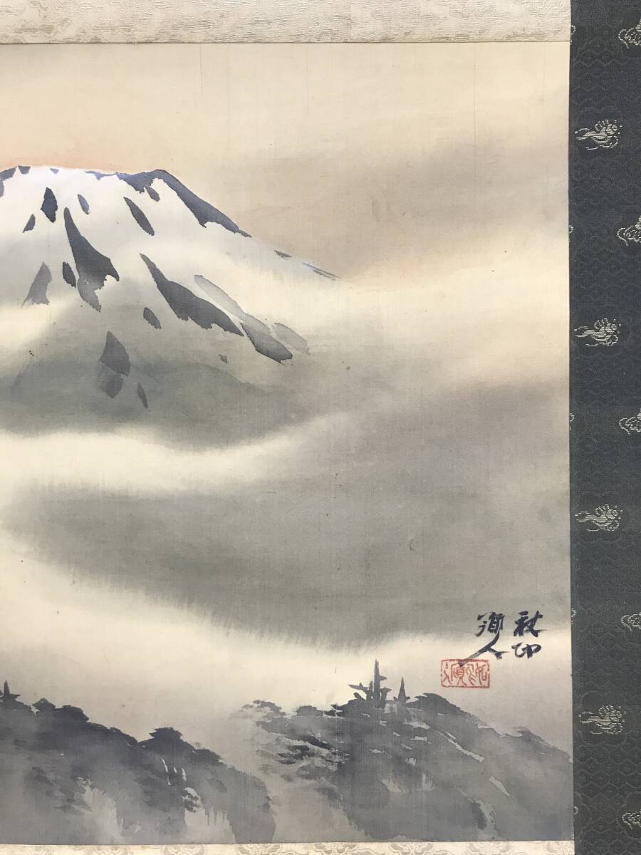 真作/河野秋邨/富士山図/富峰図/富岳図/山水図/横物/掛軸☆宝船☆AI-694