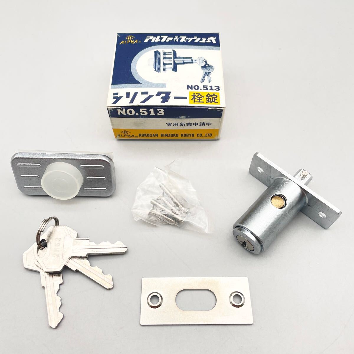 【送料全国一律360円】ALPHA アルファ No.513 足付 プッシュ式 シリンダー 栓錠 建具 引き戸 扉 玄関扉 ドア厚 23~30mm 鍵 錠前 在庫品
