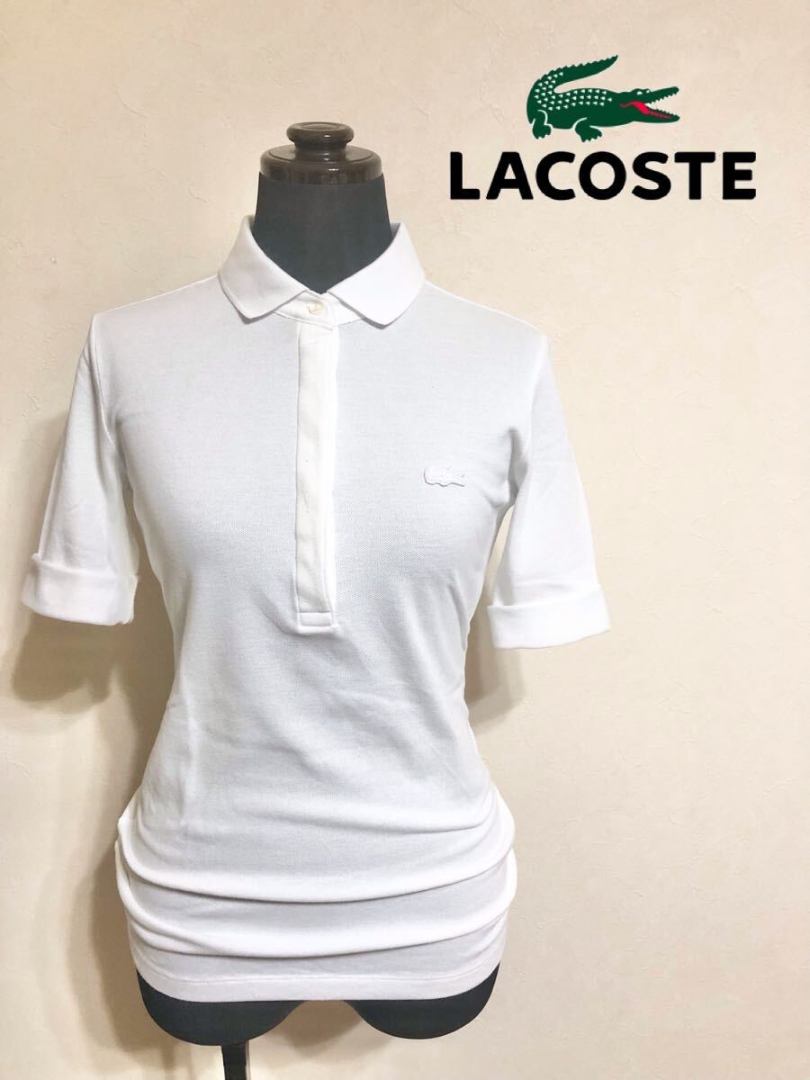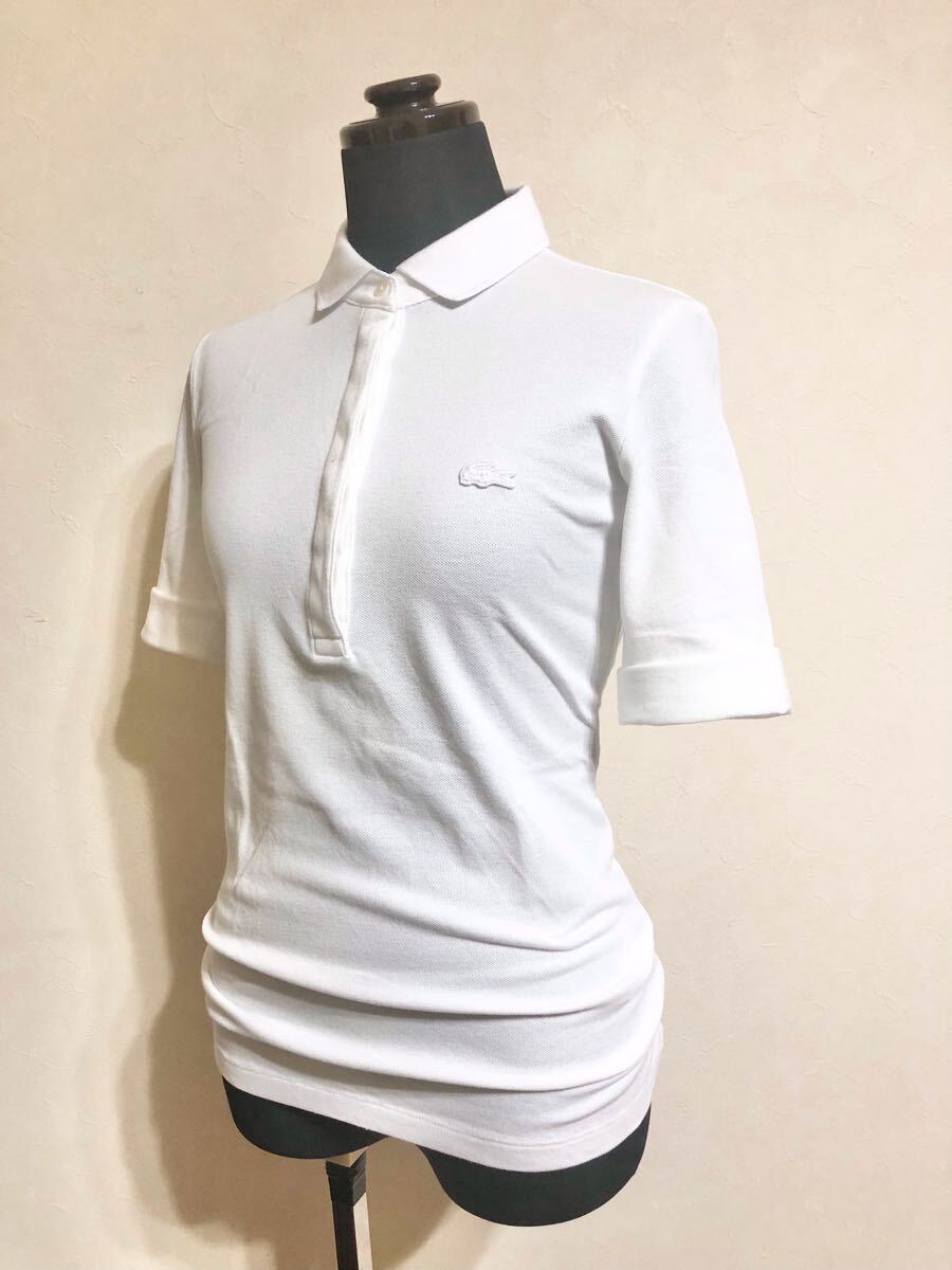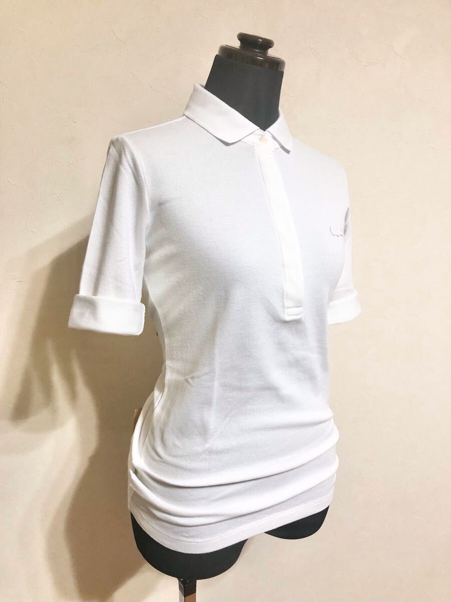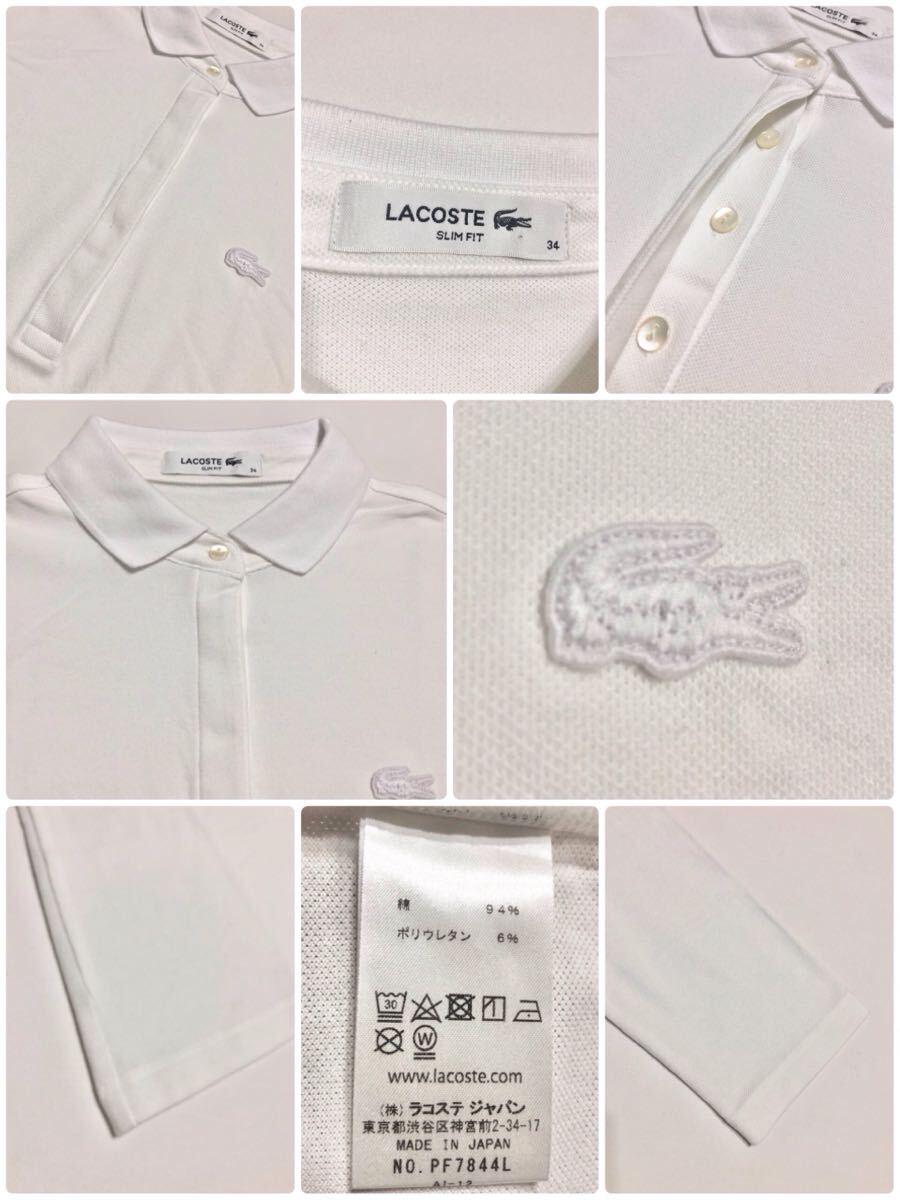【品名】【美品】 LACOSTE ラコステ レディース 鹿の子 ポロシャツ ホワイト トップス スリムフィット サイズ34 七分袖 白 日本製 PF7844L