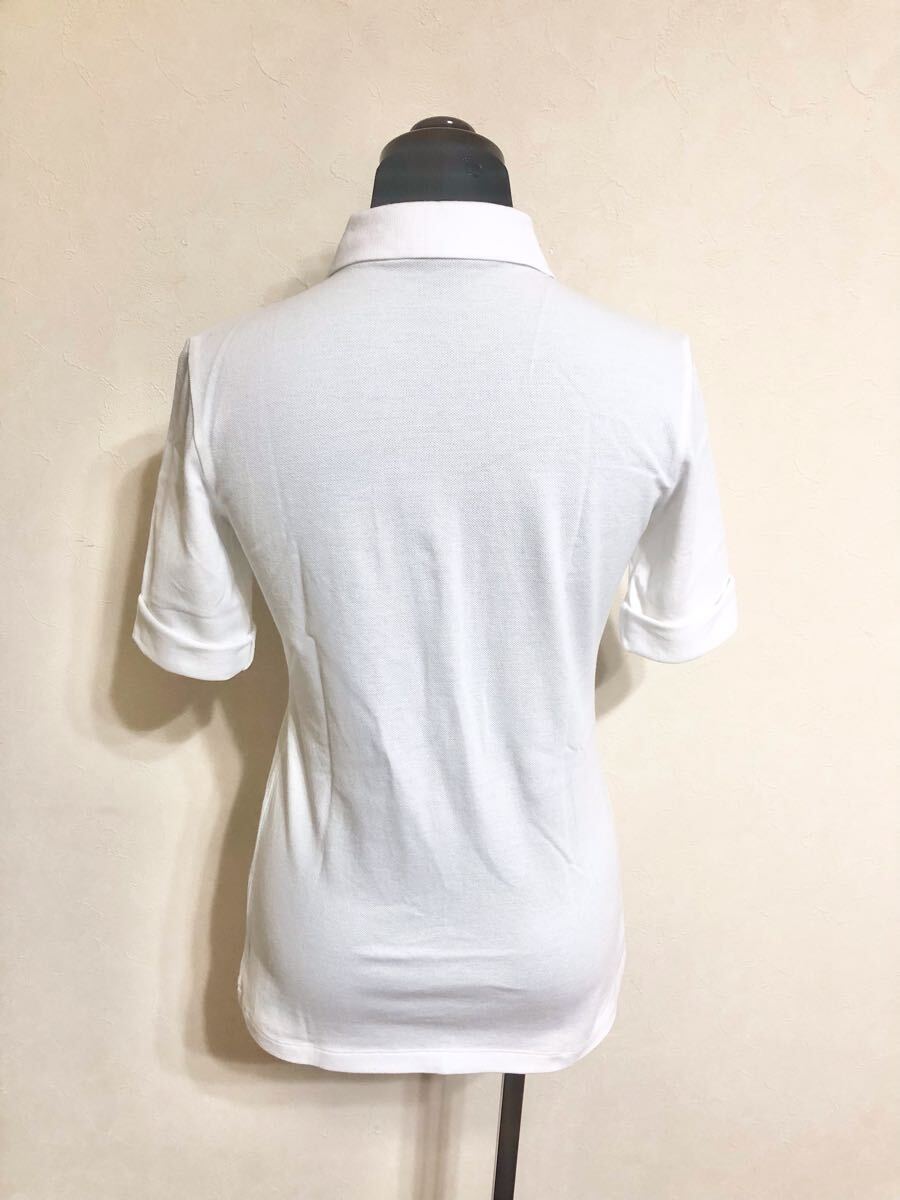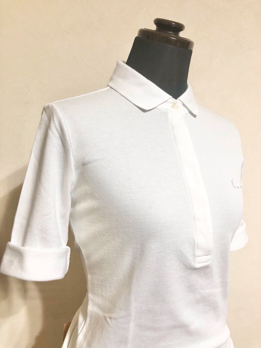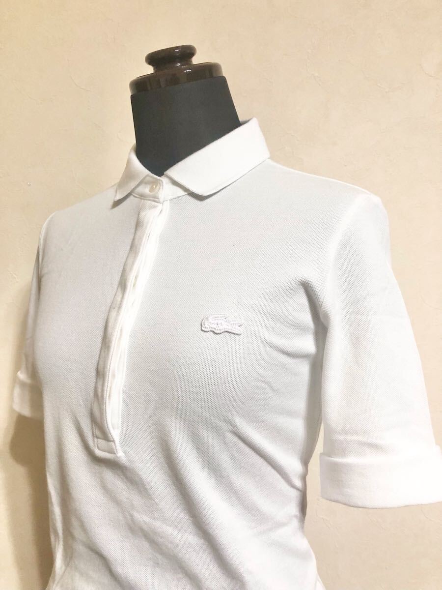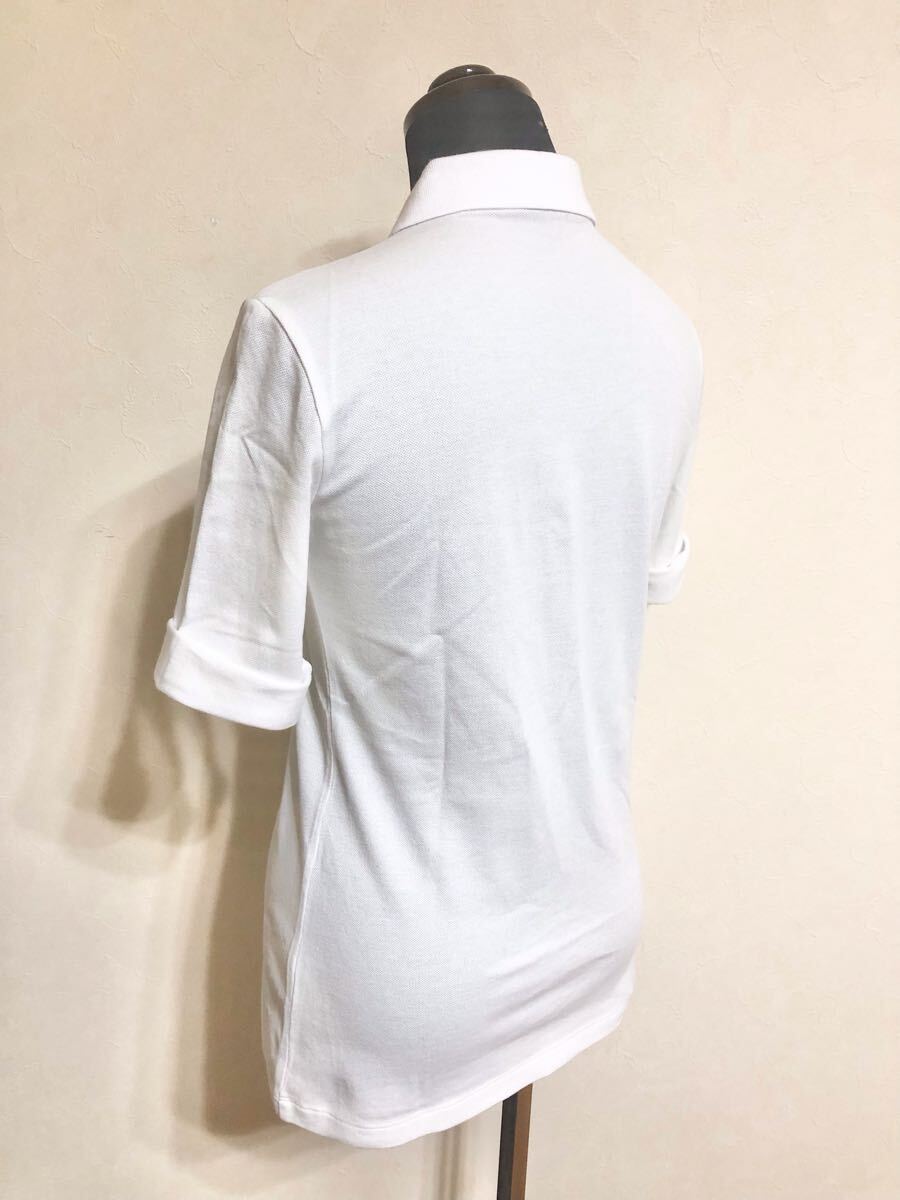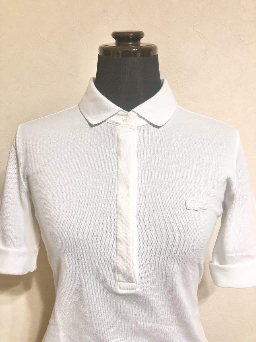 【品名】【美品】 LACOSTE ラコステ レディース 鹿の子 ポロシャツ ホワイト トップス スリムフィット サイズ34 七分袖 白 日本製 PF7844L