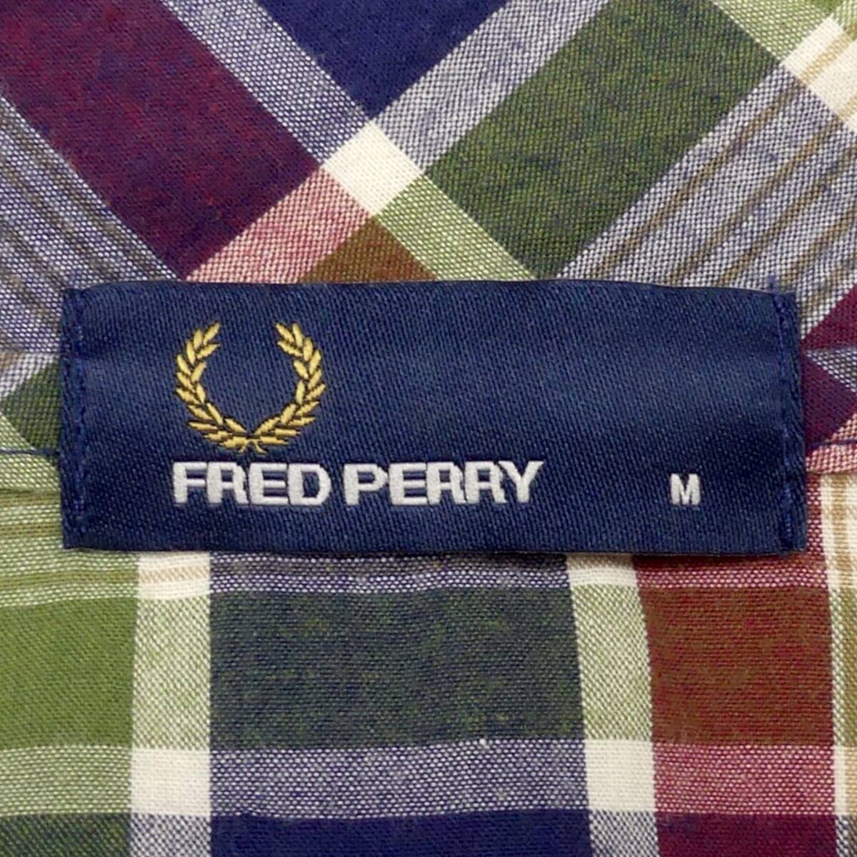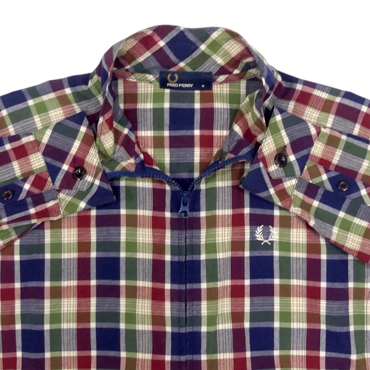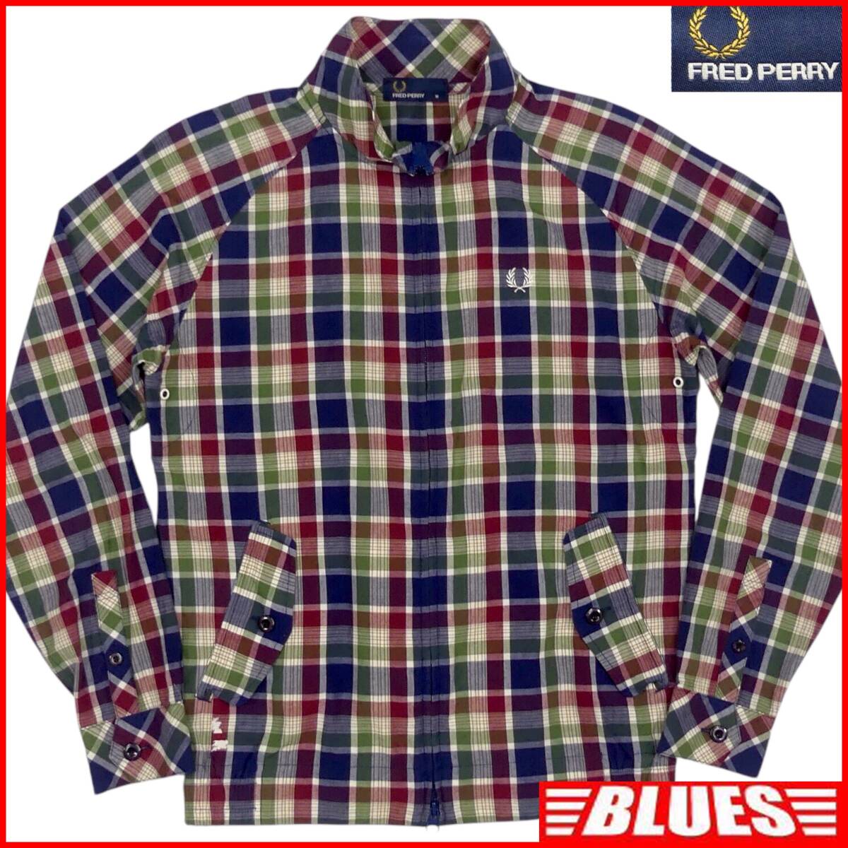 即決★FRED PERRY★メンズ M フレッドペリー ハリントンジャケット チェック ブルゾン 長袖 ジャンパー 上着 アウター 刺繍