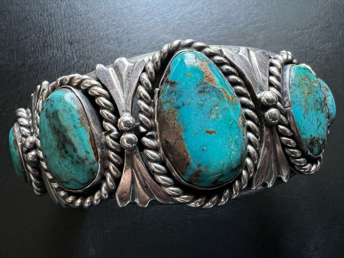 ZUNI 【OLD PAWN】1950~60's GEM 5ターコイズ バングル Coin Silver インディアンジュエリー ズニ ホピ ナバホ