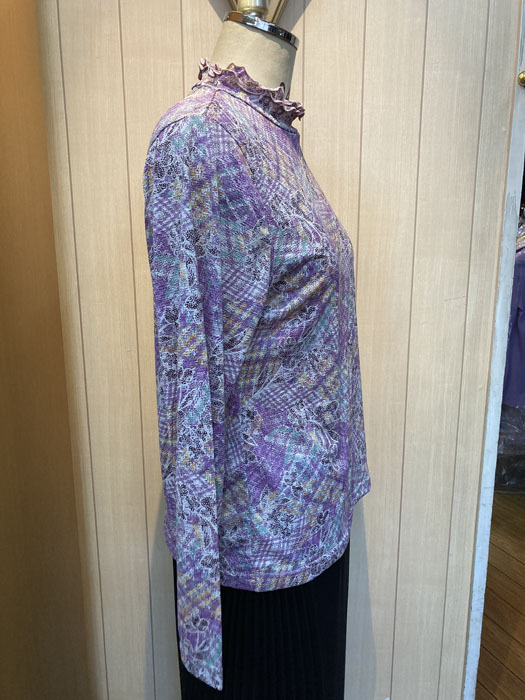| ご覧いただきありがとうございます。 新品、未使用、タグ付きです。 品名 日本製!レディースファッション、ミセス、京染パッチワーク柄プルオーバー 長袖ハイネックブラウス、カットソー、プルオーバー、やや薄手の素材です。 季節 秋冬春 年代 40代50代60代 ミセス (母の日・お誕生日・ギフト用ラッピング承ります) 商品詳細 サイズ L カラーラベンダー(藤色)系のパッチワークと花柄プリント 素材シボ加工の薄手伸縮素材 生産国日本 品質 ポリエステル95% ポリウレタン5% 肩幅:L 40.0cm 袖丈: L 56.0cm 袖口: L 11.5cm 身幅: L 52.5cm 着丈: L 58.5cm 裾回り: L 53.0cm (スリットなし) 首の高さ: L 3.5cm 注意 モニターの発色の具合によって実際のものと色が異なる場合があります。 特徴日本製!レディースファッション、ミセス、京染パッチワーク柄プルオーバー 長袖ハイネックブラウス、カットソー、プルオーバー、やや薄手の素材です。40代50代60代 秋冬春、税込み5,489円(4,990円)の商品 パッチワーク柄と花柄を合わせた京染めの詳細な柄。 着心地のよいカットソー素材です 配色が美しい日本製のこだわりブラウス。 首の2段フリルがフェミニンです。 首回りのシルエットがきれいです。 肌触りの良いソフトな風合。 京染プリントの品の良さが出ています。 | |