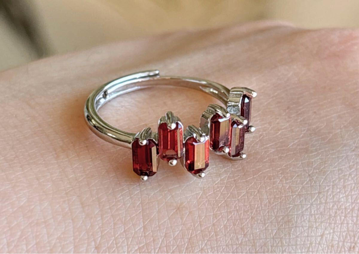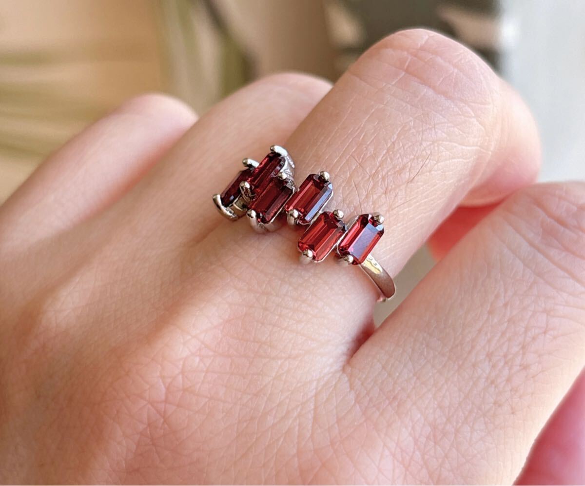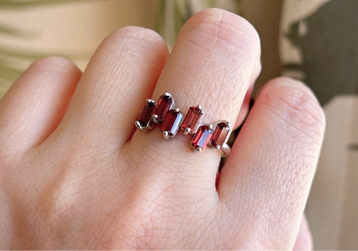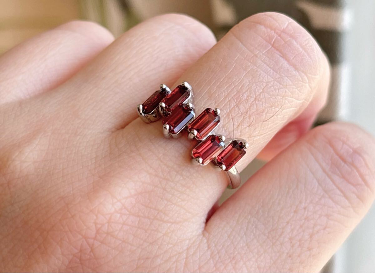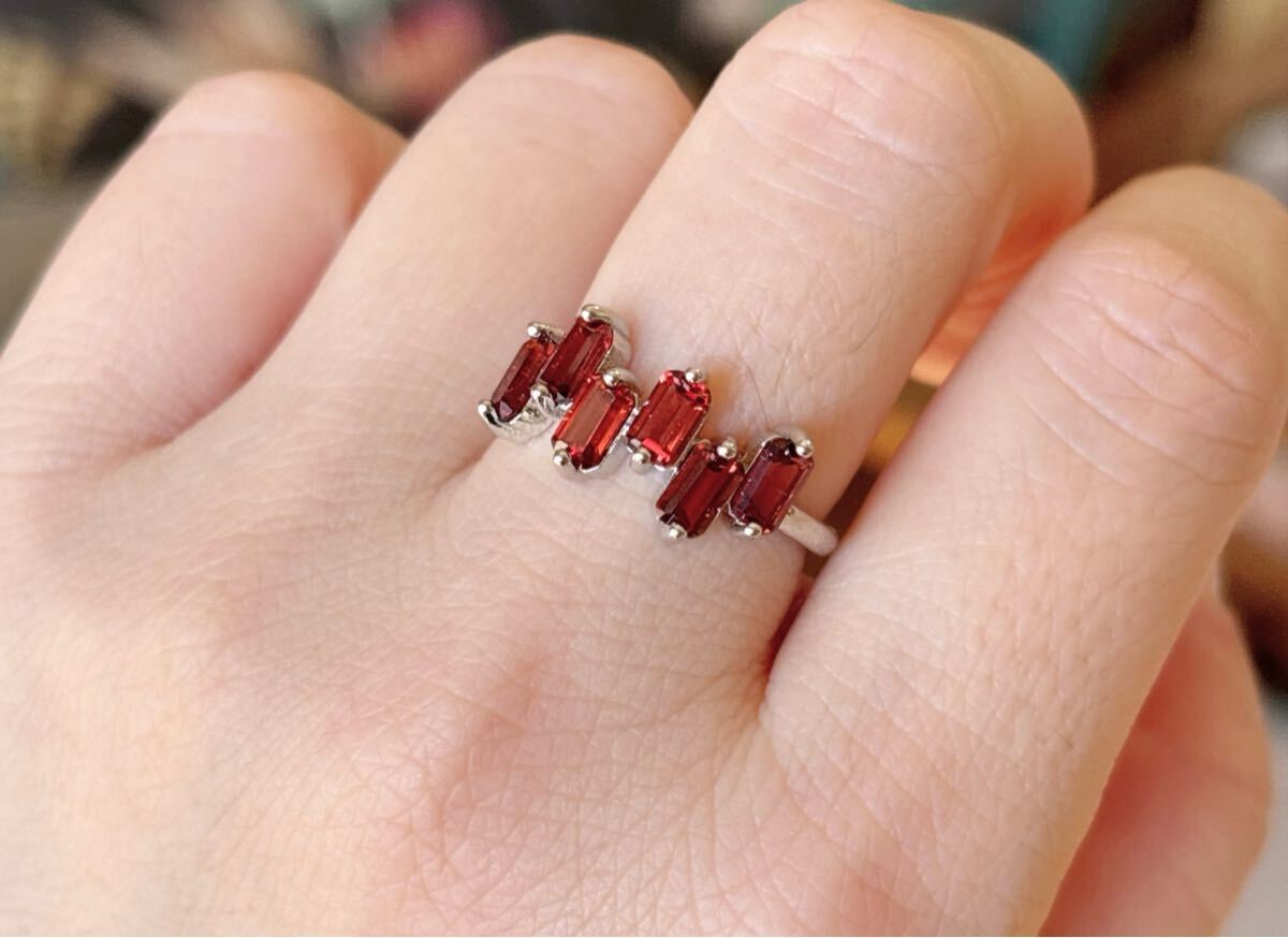 天然石ワインレッドガーネット(石榴石)リングのサイズ約:9mm*18mm*厚さ3mm;
