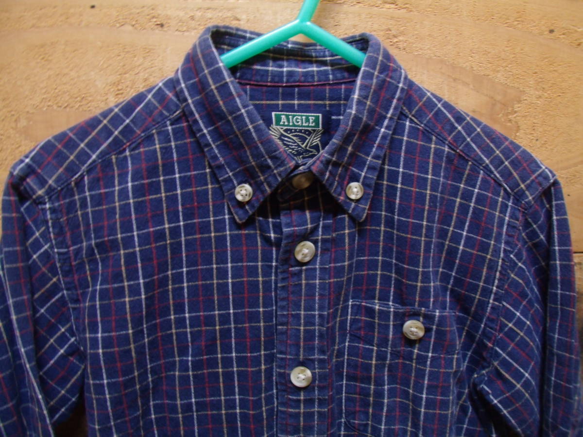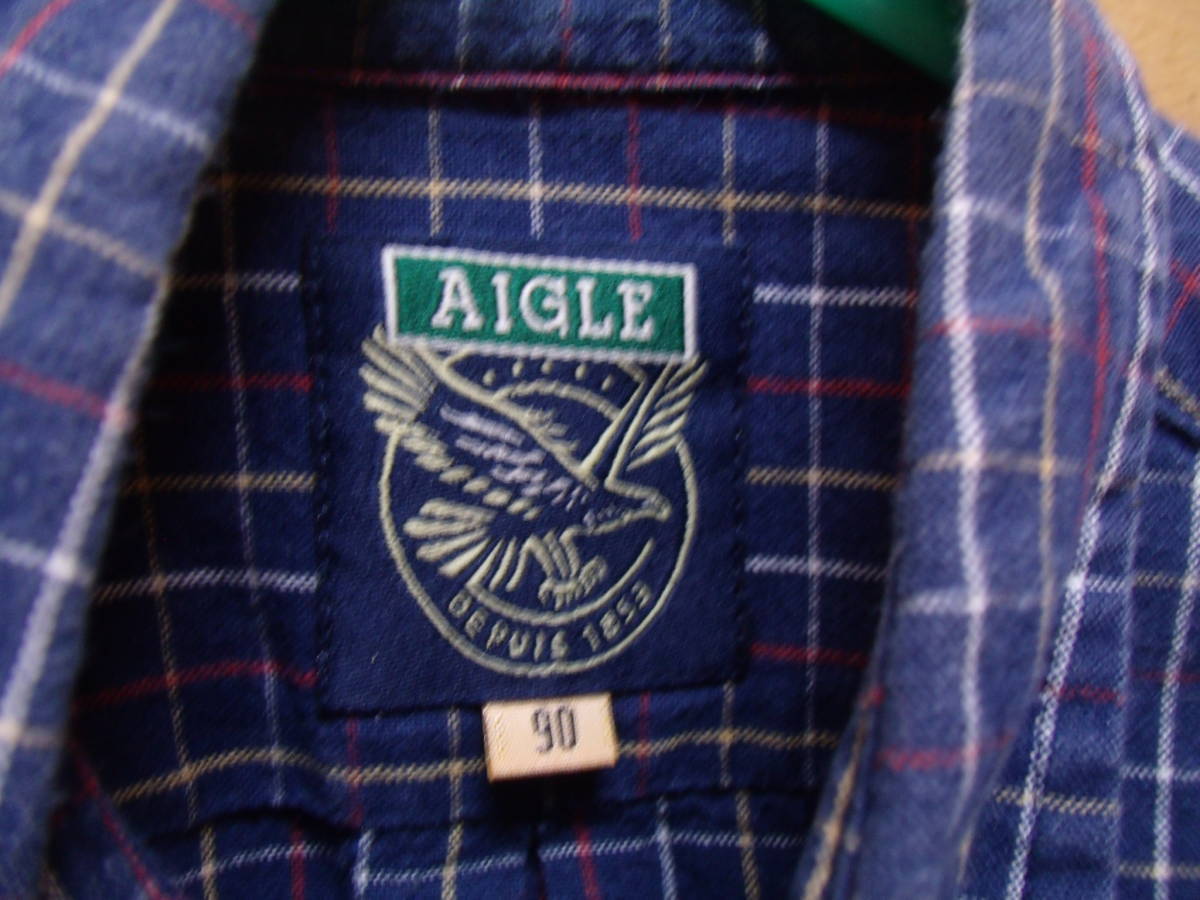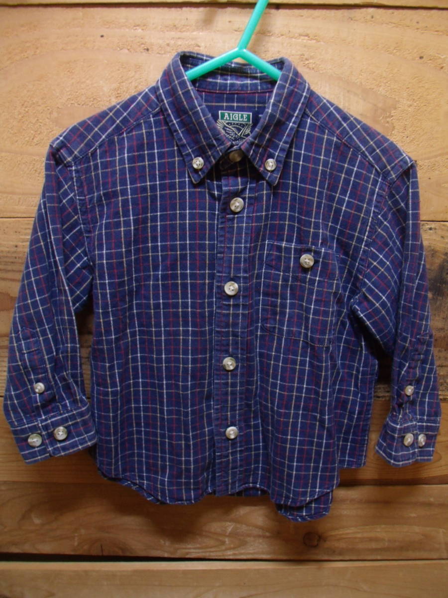 全国送料無料 エーグル AIGLE 子供服キッズベビー男の子 長袖 ボタンダウンチェックシャツ 90
