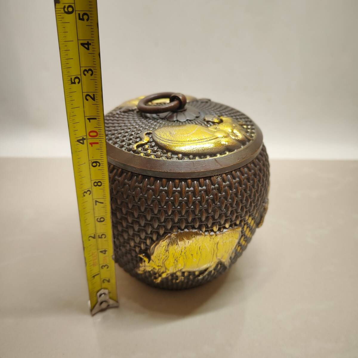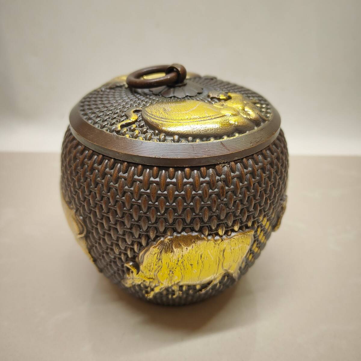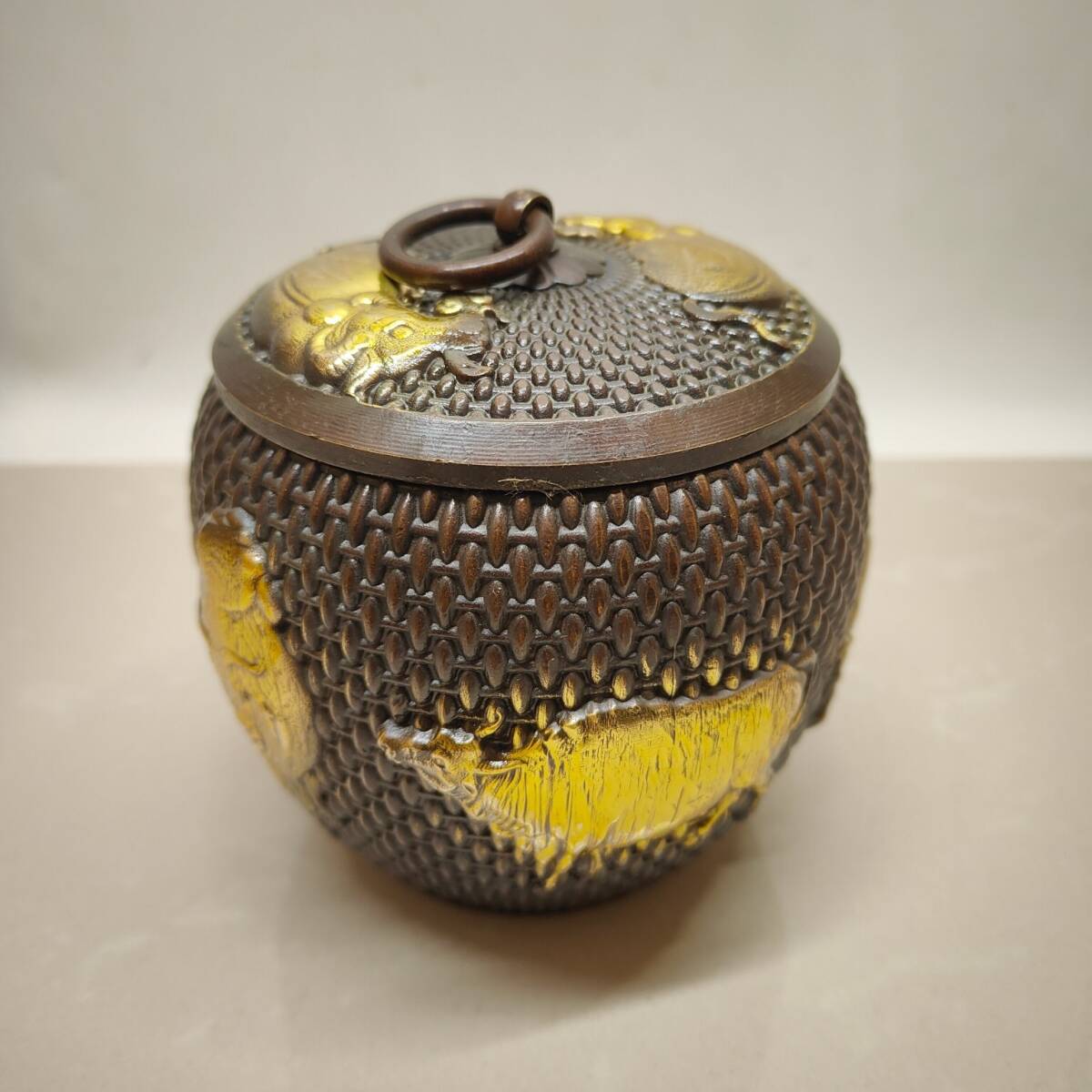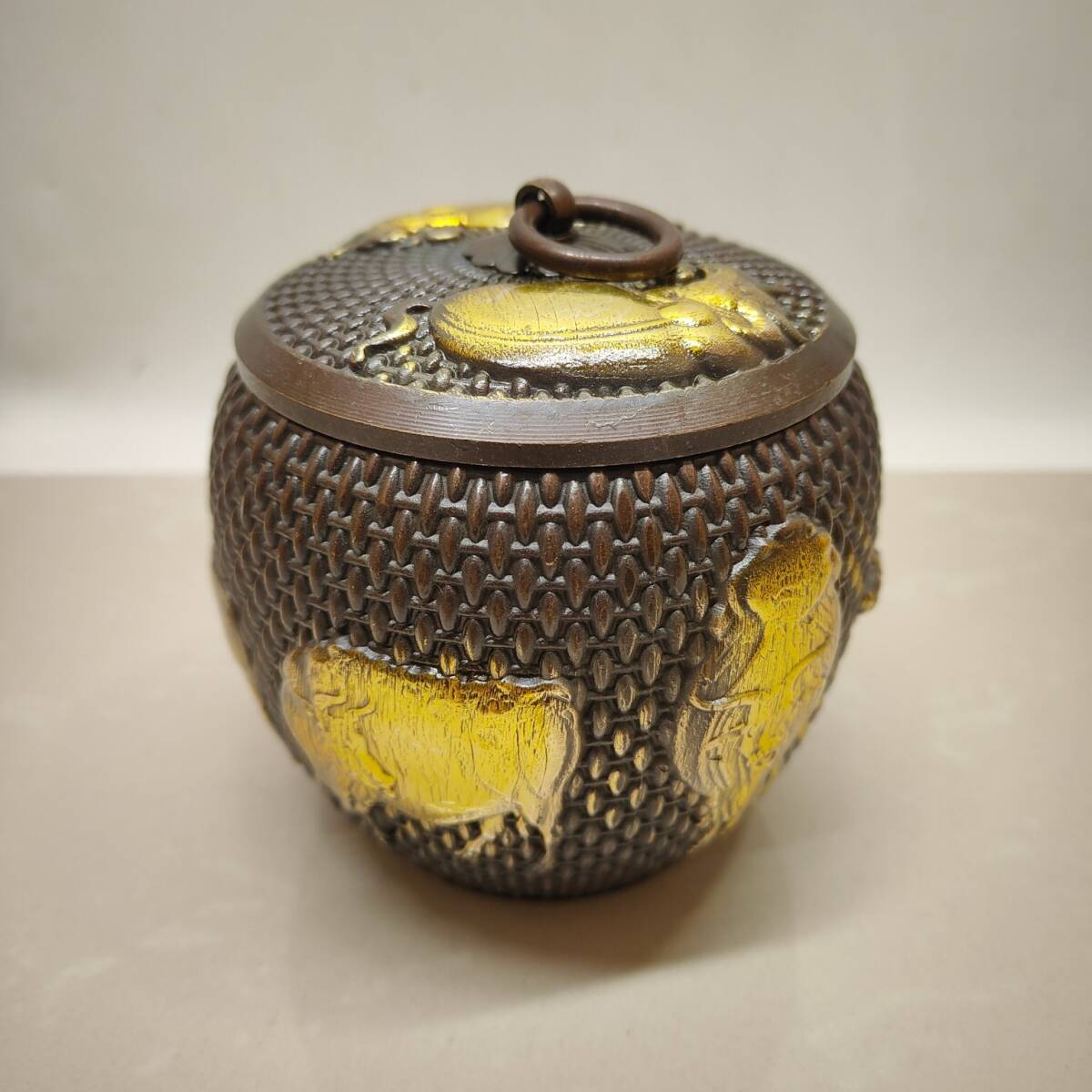 | 【蔵友館蔵品・黄銅製・塗金・五牛紋・茶葉罐】・希少珍品・置物・賞物・中国時代美術 |