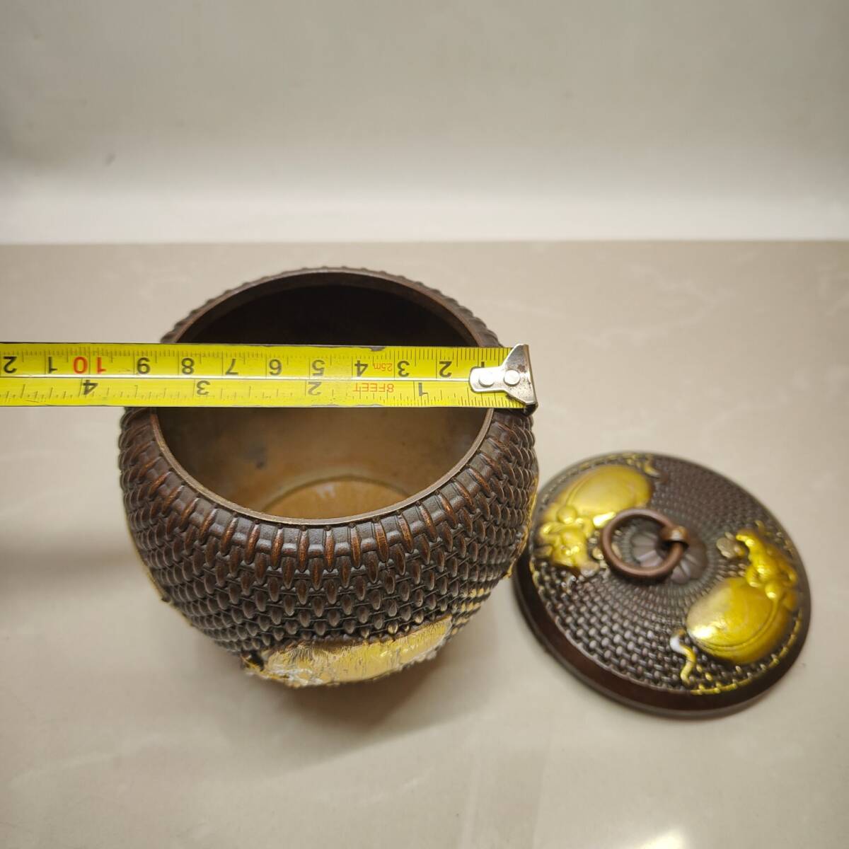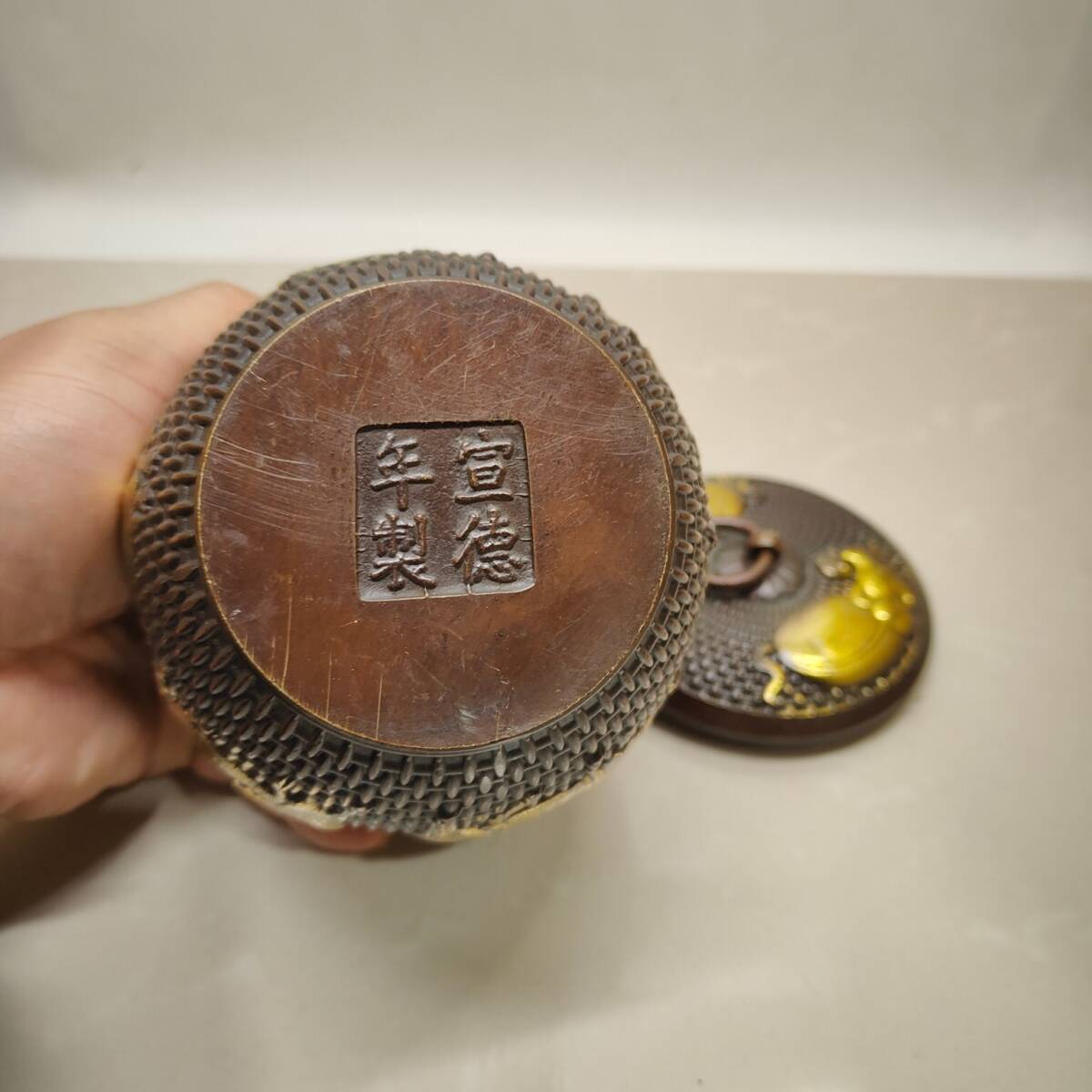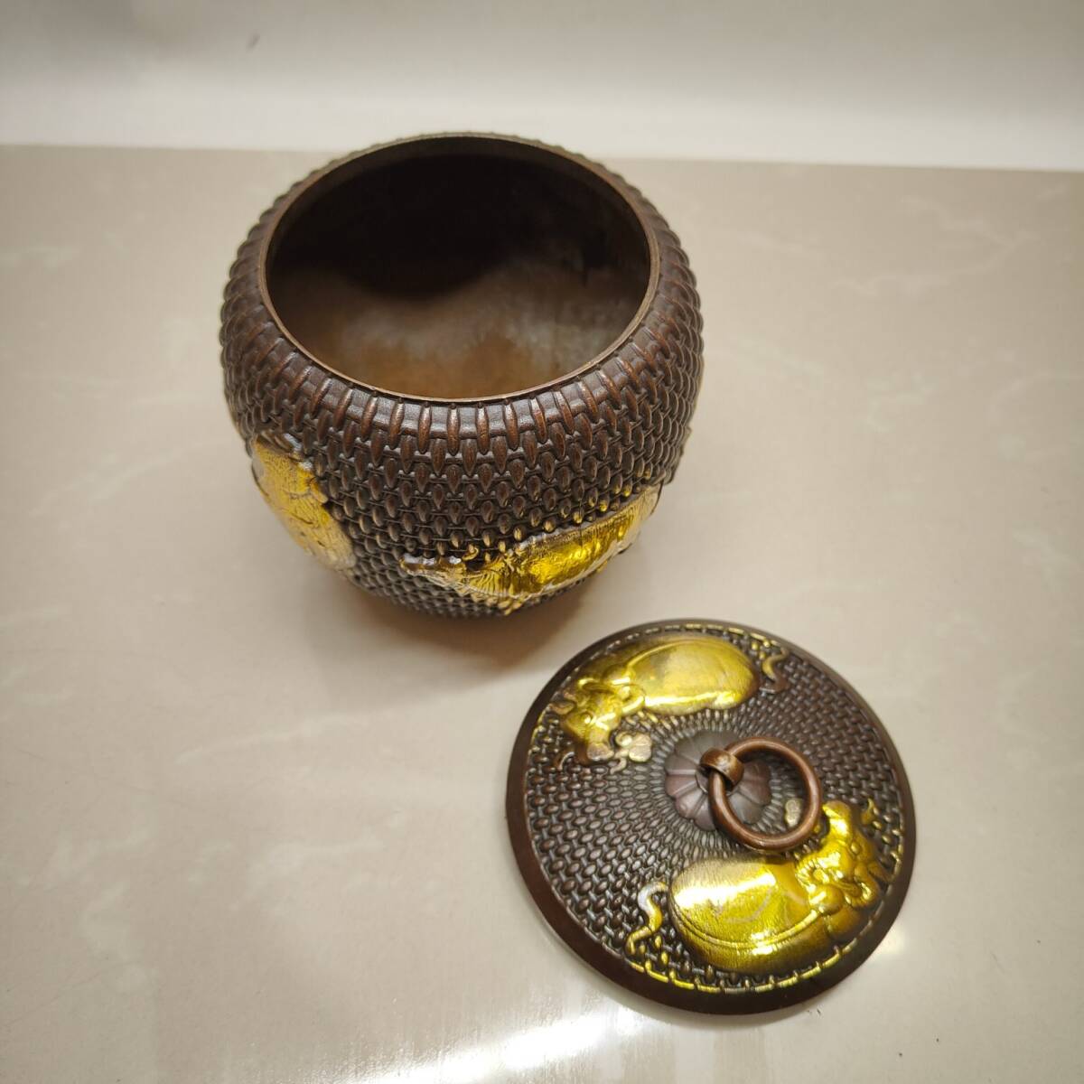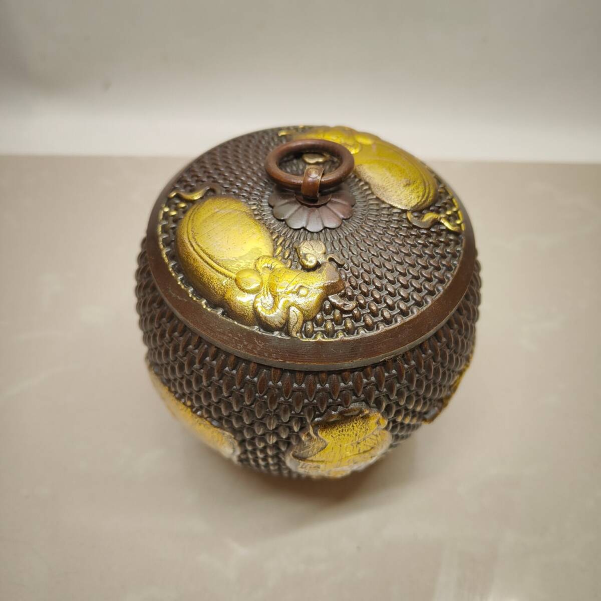 | 【蔵友館蔵品・黄銅製・塗金・五牛紋・茶葉罐】・希少珍品・置物・賞物・中国時代美術 |