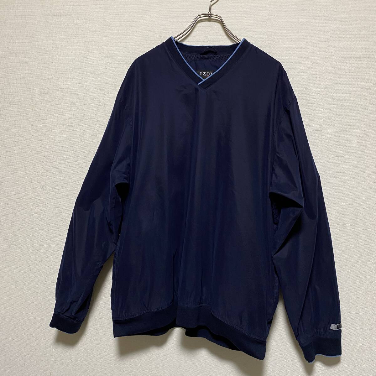 アメリカ古着 IZOD ゴルフ プルオーバー ジャケット Vネック US古着 無地 ネイビー XLサイズ 【H166】