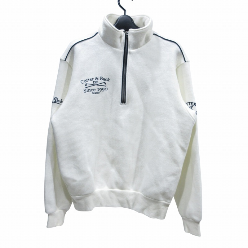 カッター&バック CUTTER&BUCK フリースジャケット プルオーバー ハーフジップ ロゴ 白 ホワイト M メンズ