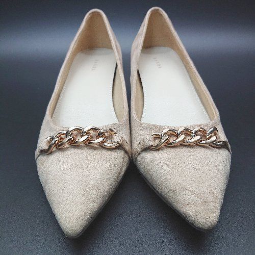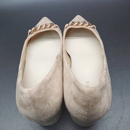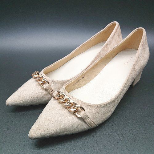 ◇ RANDA ランダ ポインテッドトゥ チェーン 起毛 シンプル オシャレ パンプス サイズ24.0 ベージュ系 レディース E