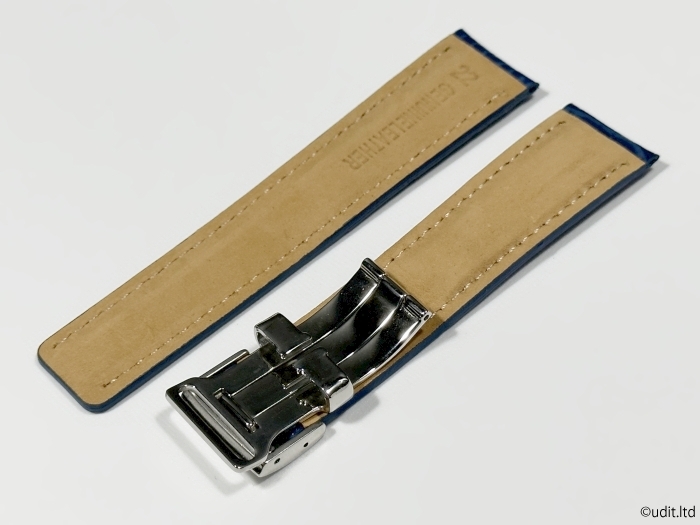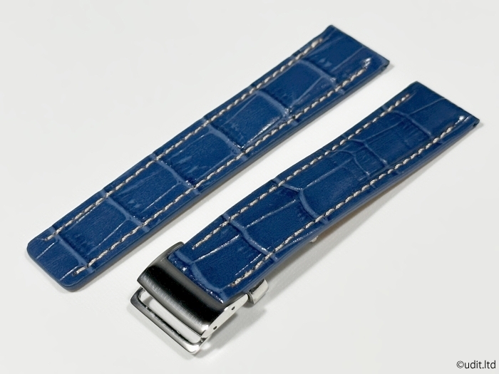 ラグ幅22mm ブライトリング対応 レザーベルト ブルー 時計用バンド 腕時計ベルト スーパーオーシャン クロノマット ナビタイマー 等に