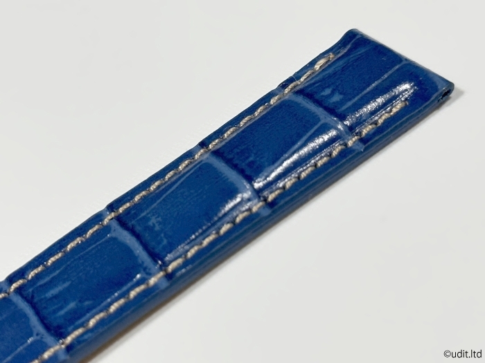 高級感あふれるクロコダイル調の型押しデザインのエレガントな腕時計用レザーベルトです。
