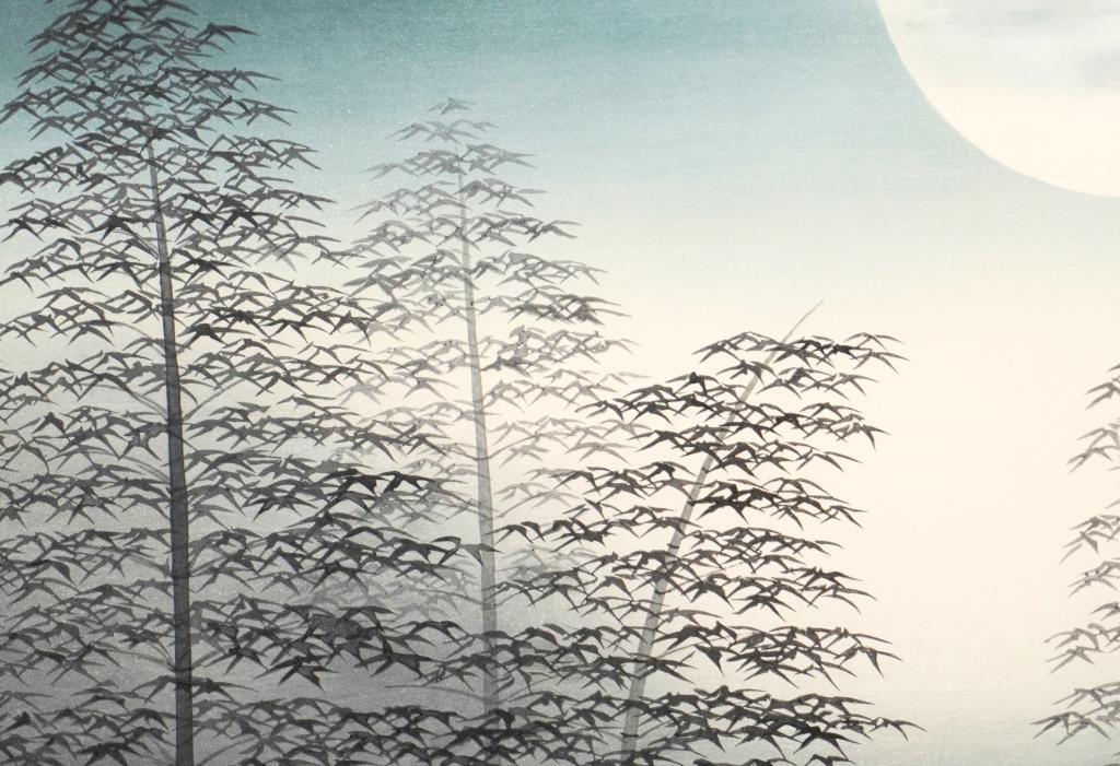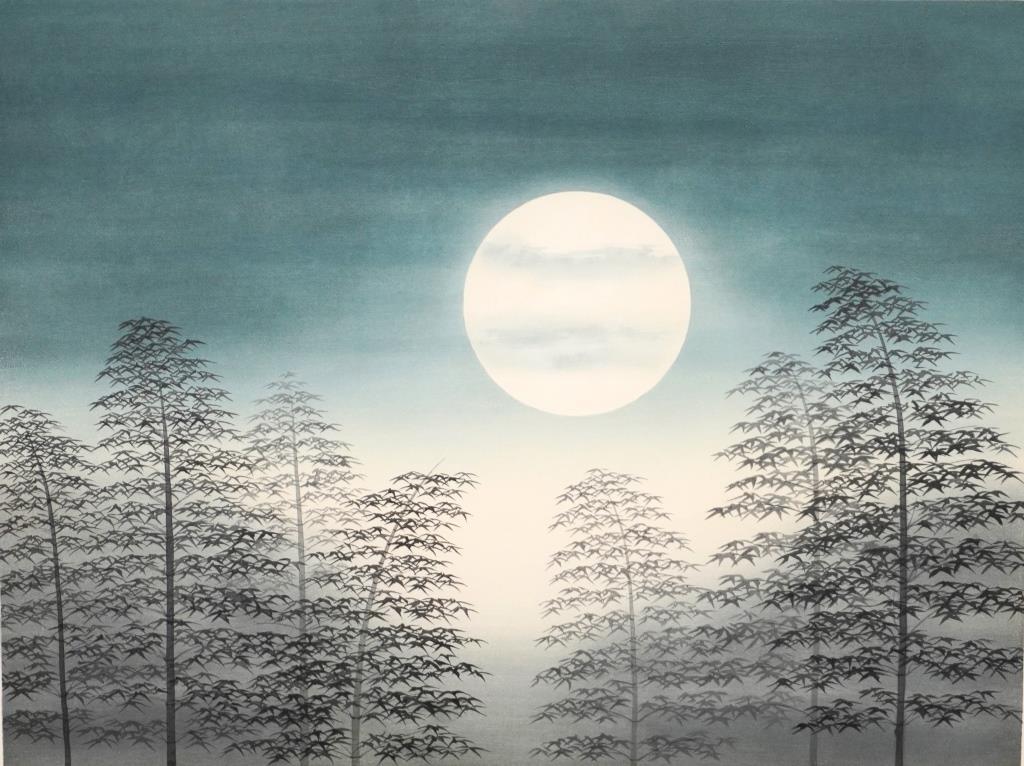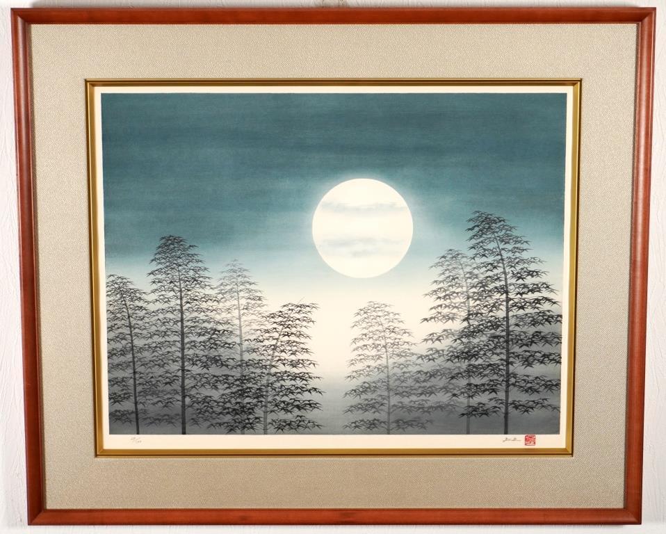 平川敏夫『月光竹韻』◆木版画◆落款・サイン・松坂屋監修シール有◆限定100版!人気巨匠!創画会!額装