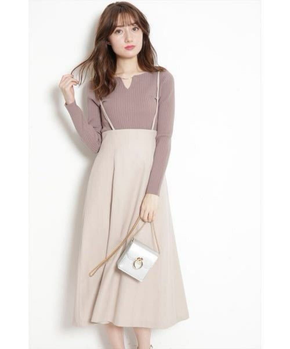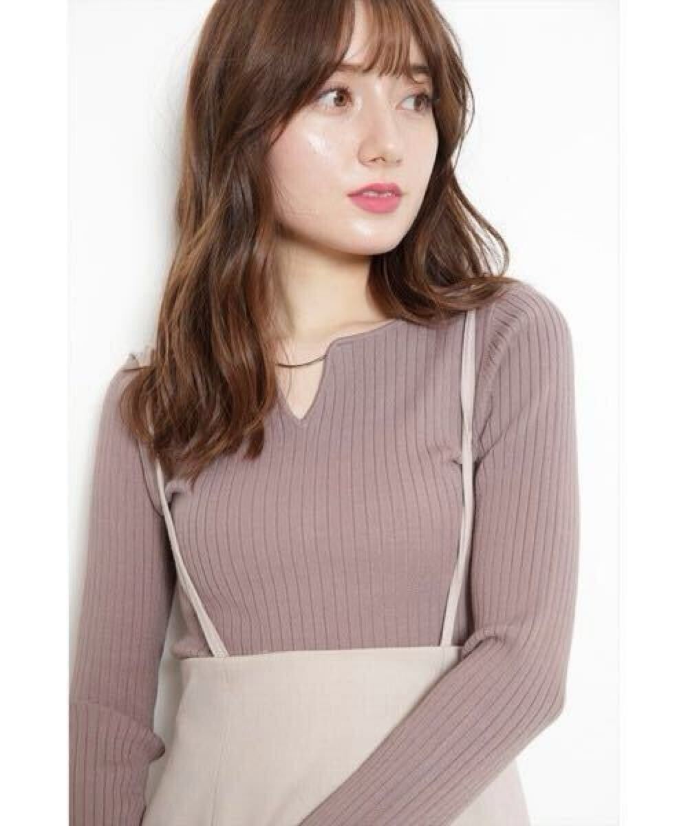 上品に艶めくバー&チェーンパーツがリッチでレディなアクセント!前後共にフロントにでき、1枚で表情の変化が楽しめる2WAYデザインのニットです。