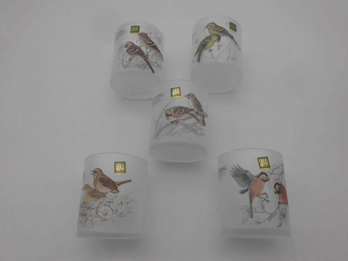 45065■■ 新品!HOYA(BIRD WATCHER)森上義孝(タンブラーグラス)(5客)セット(日本製)(絵柄違い)