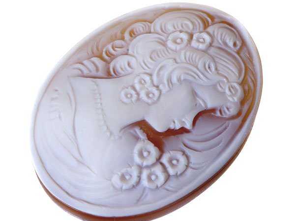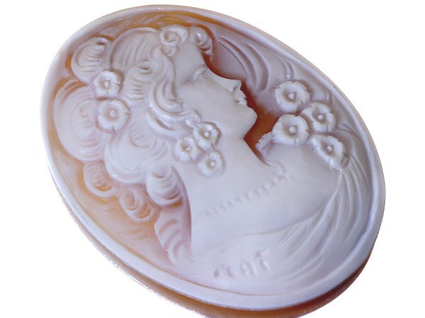 華やかな女性と花の彫刻が素敵な高級シェルカメオルースを激安価格で特別大放出致します!