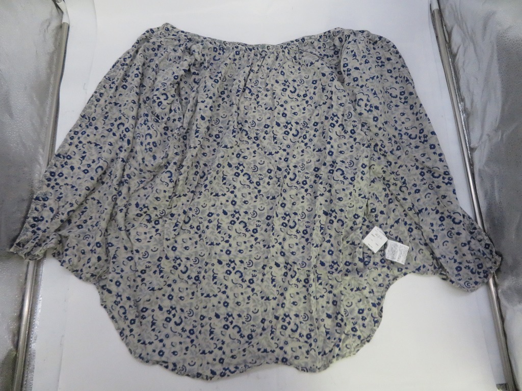 JM13★チュニック 半袖 ゆったり 花柄 LLサイズ ブルー 古着 | ||