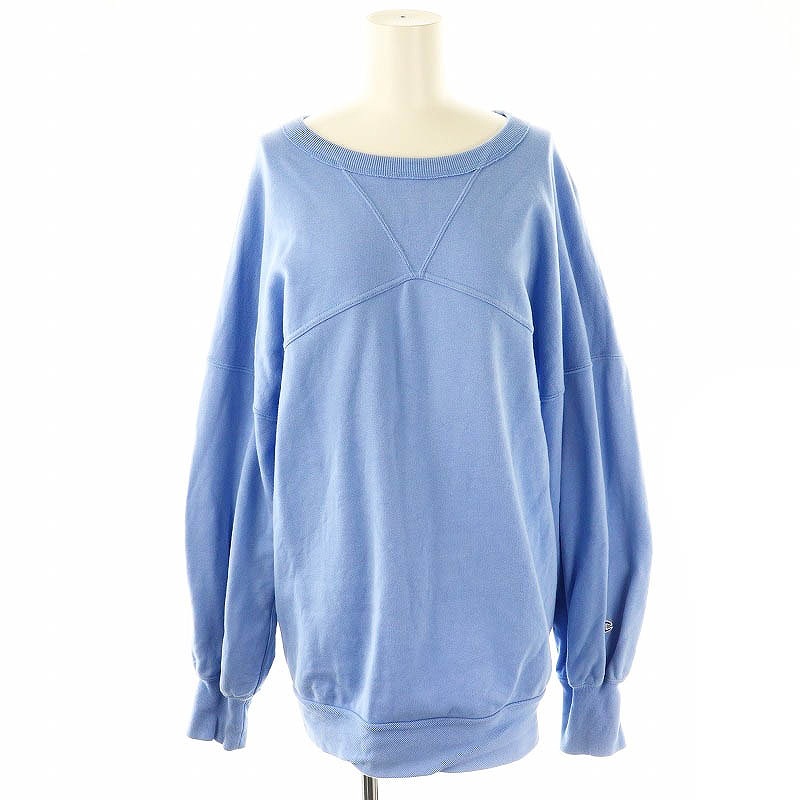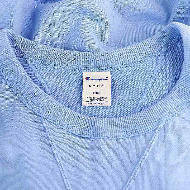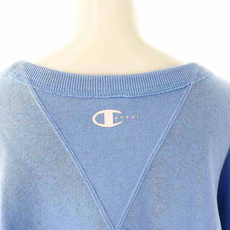 チャンピオン CHAMPION × アメリ AMERI OVER SWEAT TOP スウェット トレーナー 長袖 コットン F 水色 /NR ■OS レディース