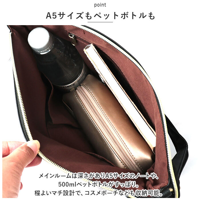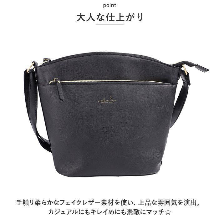 商品説明 | ・・シーンを選ばず使える、シンプルなデザイン♪LIZDAYSから「台形型ショルダーバッグ」が新登場。 ・【大人な仕上がり】 ・手触り柔らかなフェイクレザー素材を使い、上品な雰囲気を演出。カジュアルにもキレイめにも素敵にマッチ☆ ・【A5サイズもペットボトルも】 ・メインルームは深さがありA5サイズのノートや、500mlペットボトルがすっぽり。程よいマチ設計で、コスメポーチなども収納可能。 ・【収納ポケット】 ・内側にコインケースやカギなどの小さな小物を収納できる、オープンポケットとファスナーポケット付き。 ・フロントのファスナーポケットと背面のポケットはサッと取り出したい小物の定位置に最適。 ・【安心の天ファスナー開口】 ・開口部は天ファスナー式。中身がこぼれ落ちにくく、プライバシーを確保。 ・【斜め掛けも肩掛けも】 ・長さを調節して、肩掛けも斜め掛けも自在なワンショルダータイプ。 ・【お気に入りをチョイス】 ・コーデに馴染みやすい、落ち着きのあるカラーをラインナップ。 ・【ポケット仕様】 ・メインルーム・・・オープンポケット×2、ファスナーポケット×1 ・フロント・・・ファスナーポケット×1 ・背面・・・オープンポケット×1 |