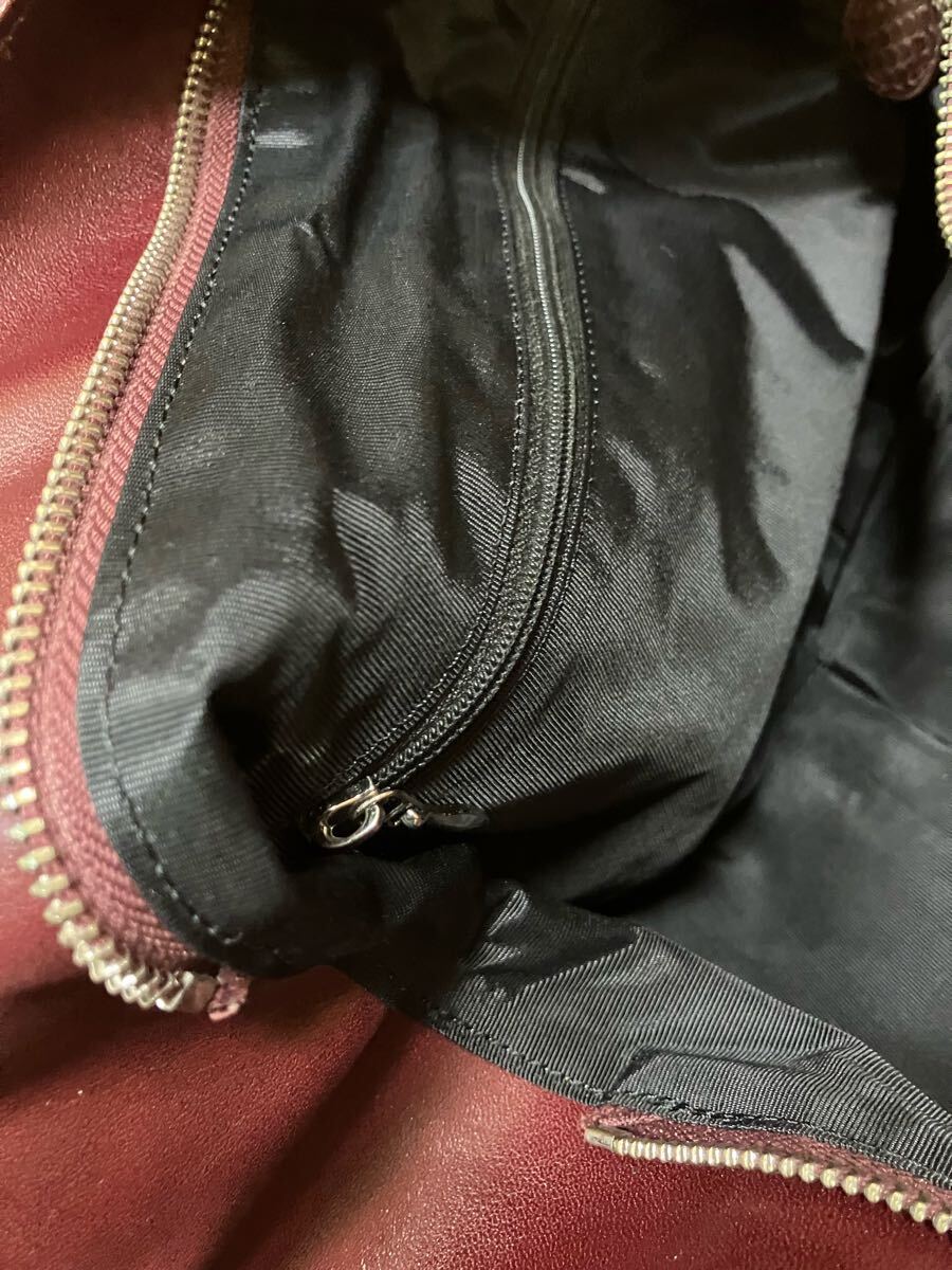 入口ファスナー周りの赤い革部分も、全て新しい革に貼り替えています。