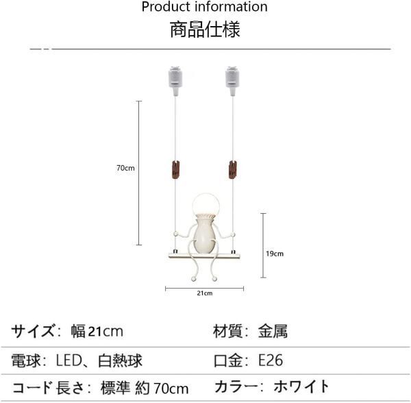 • 【モダンなデザイン】ブランコに乗っているかわいい子の特別なデザインで、シンプルで格好いいペンダントライトです。取り付ける電球によって雰囲気も変わるのでお好みの電球をお楽しみいただけます。照明効果だけでなく、良好な装飾効果も有する。