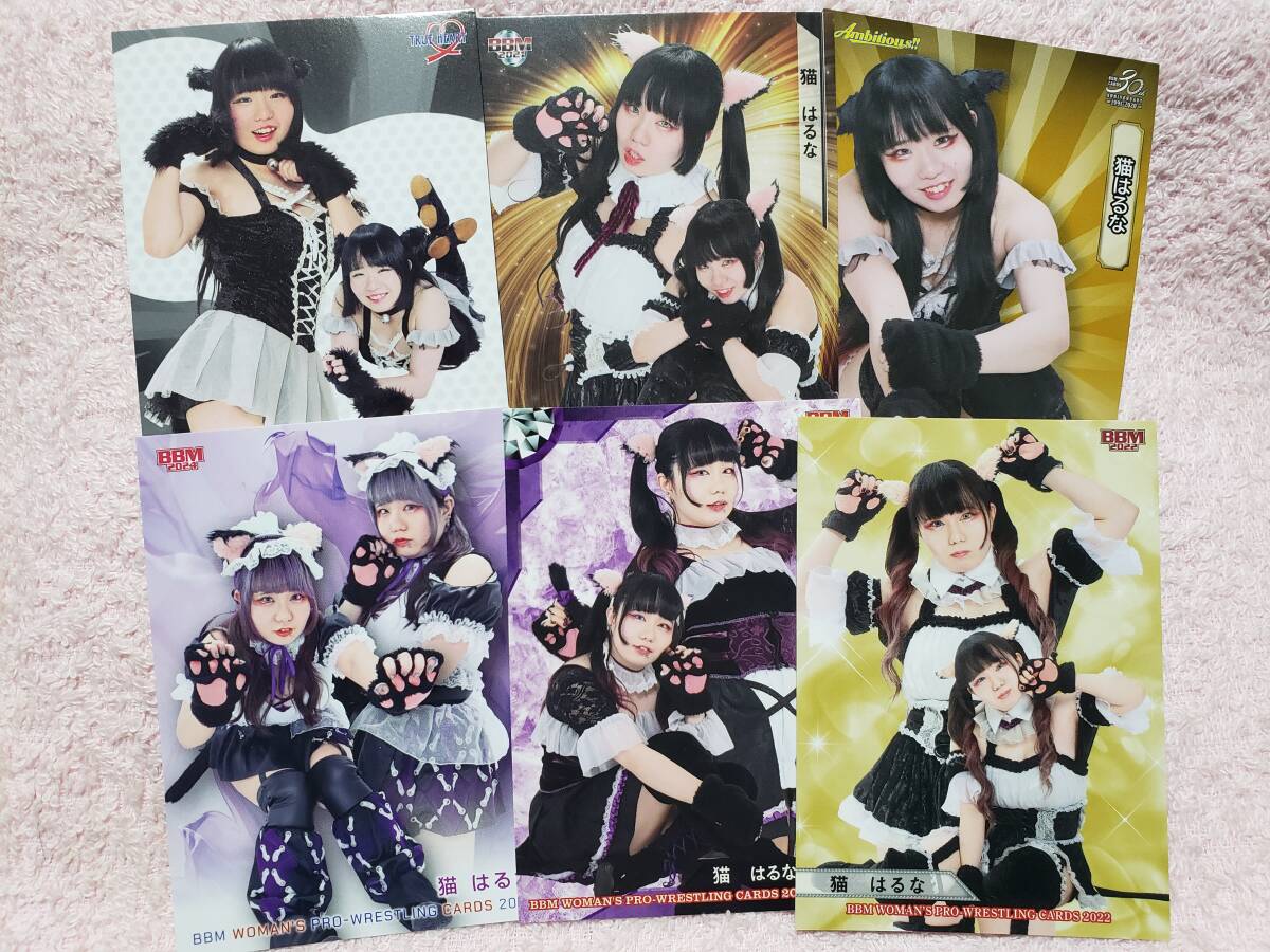 ベースボールマガジン社(BBM社)より発売された女子プロレスカードに封入されておりました猫はるな選手のレギュラーカード6枚セットになります。