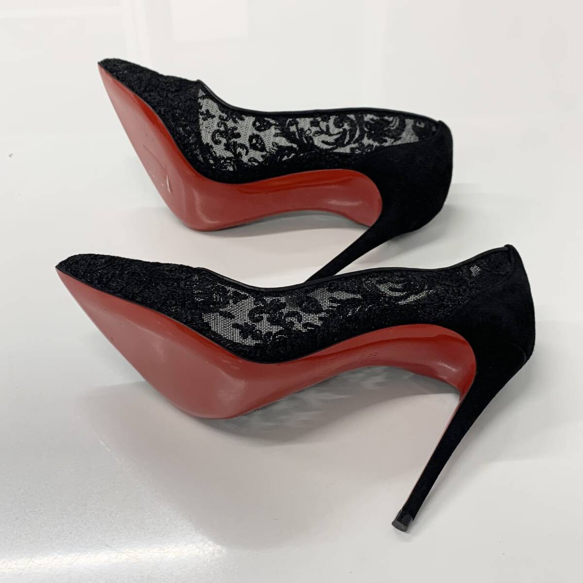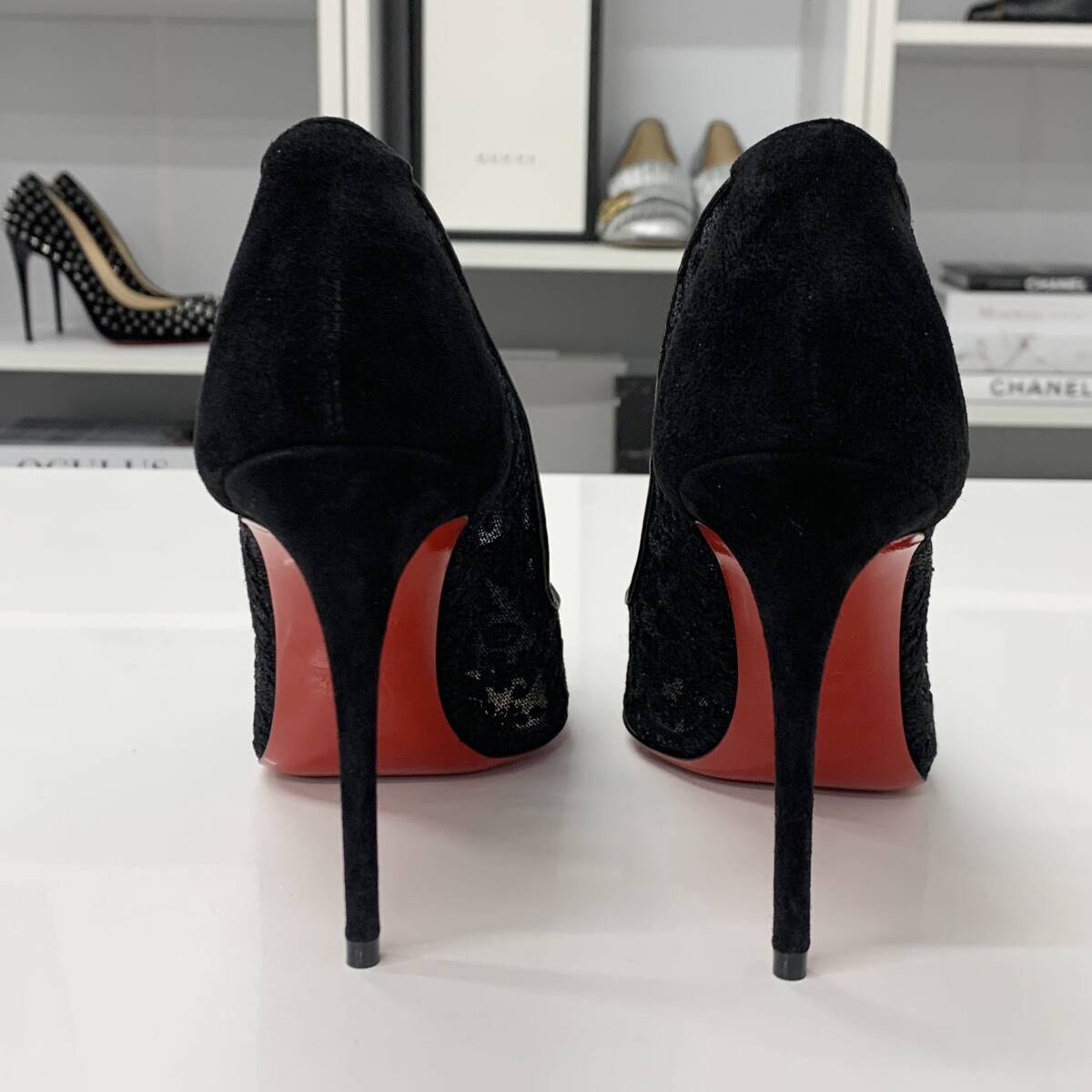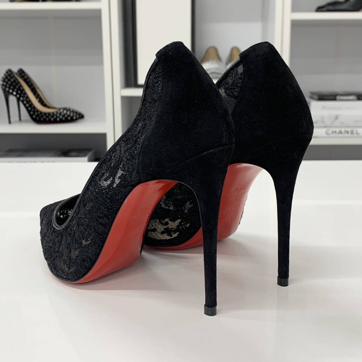 M11728 クリスチャンルブタン レース スエード パンプス ブラック
