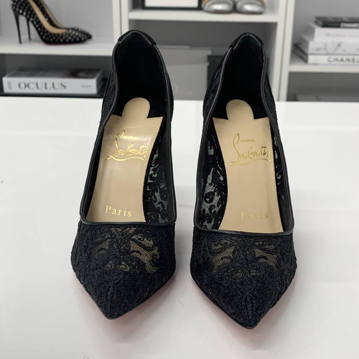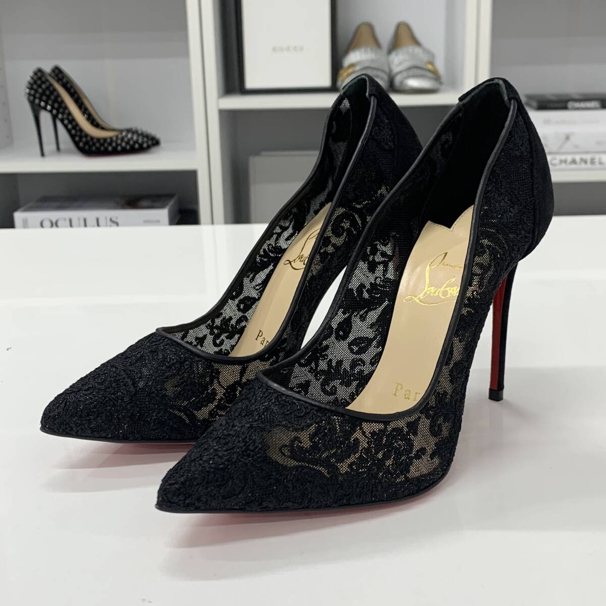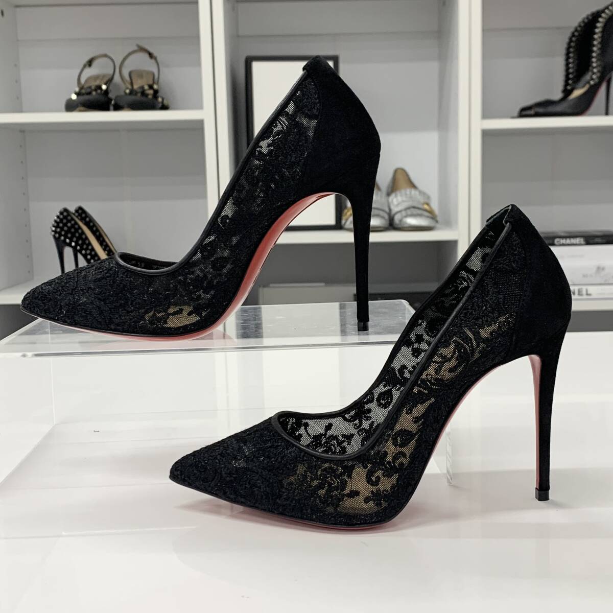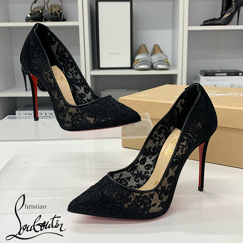M11728 クリスチャンルブタン レース スエード パンプス ブラック