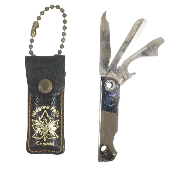 カナダ観光土産 ナイアガラの滝 金属製折りたたみ式マルチツール 4Way  ポケットナイフ ケース付 1970〜1990年代