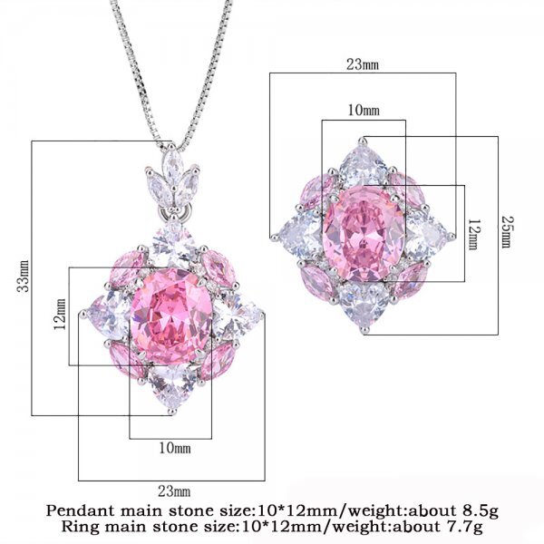 女性用高級ピンククォーツ,カーボンダイヤモンドジュエリーセット(ネックレス、リング)、10x12mm、ウェディングバンド、パーティー用ファインジュエリー、アクセサリー