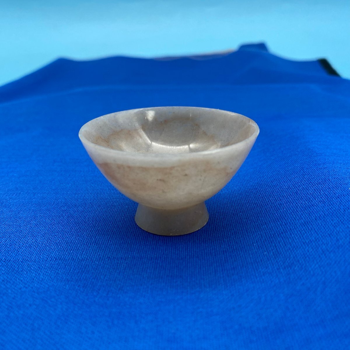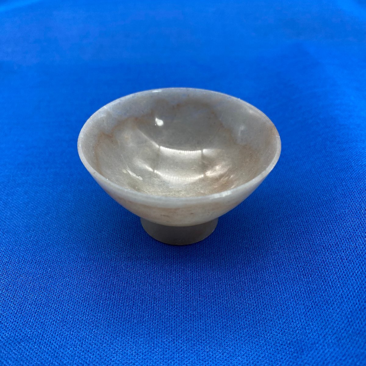 F2【16069P175】福光砡盃? お猪口 おちょこ 酒器 食器 ぐい呑み 石製 小型 独特 模様 光沢 おしゃれ グレー マーブル