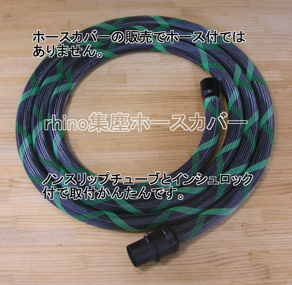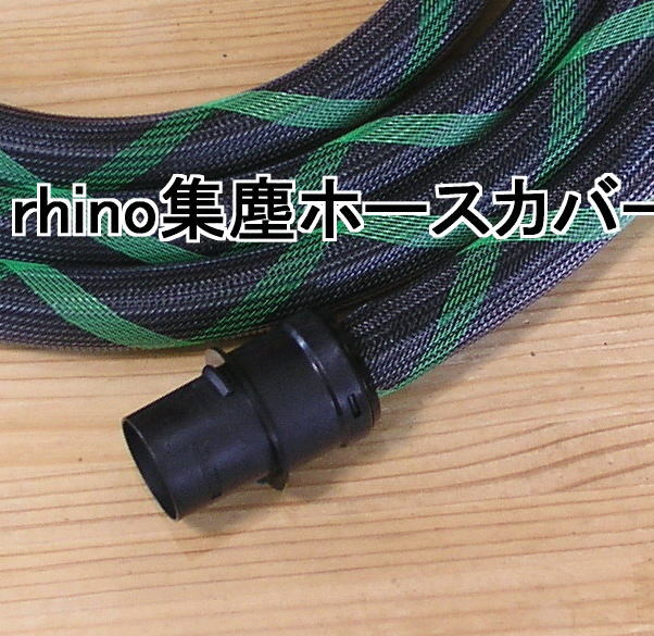 [rhino集塵ホースカバー] 025墨黒Xグリーン マキタ純正ハイコーキ純正同等 Q9 防じんマルノコスパイラルコードメッシュスリーブ